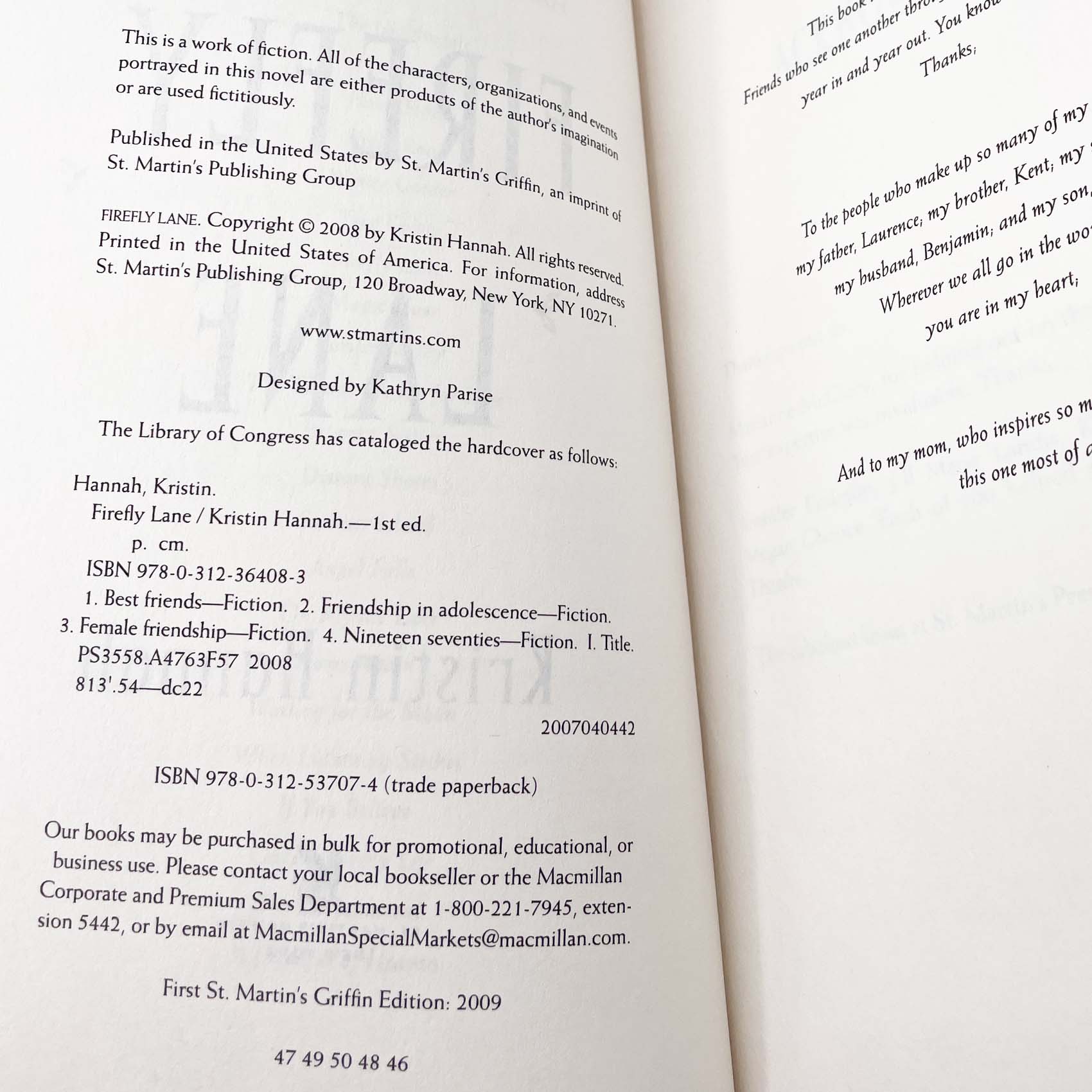 Firefly Lane by Kristin Hannah [TRADE PAPERBACK] 2009 • St. Martin's Griffin