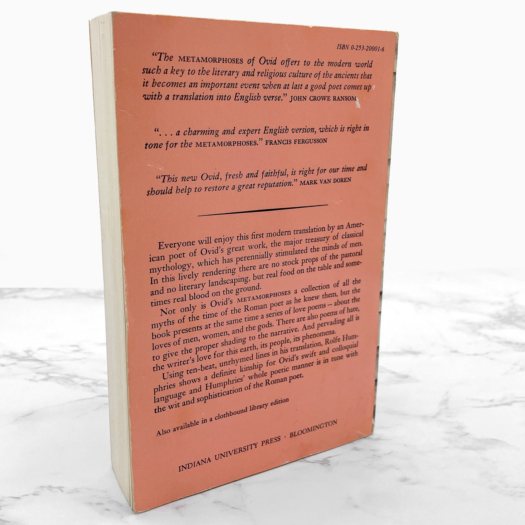 Metamorphoses by Ovid translated by Rolfe Humphries [TRADE PAPERBACK] 1955 • Indiana University Press
