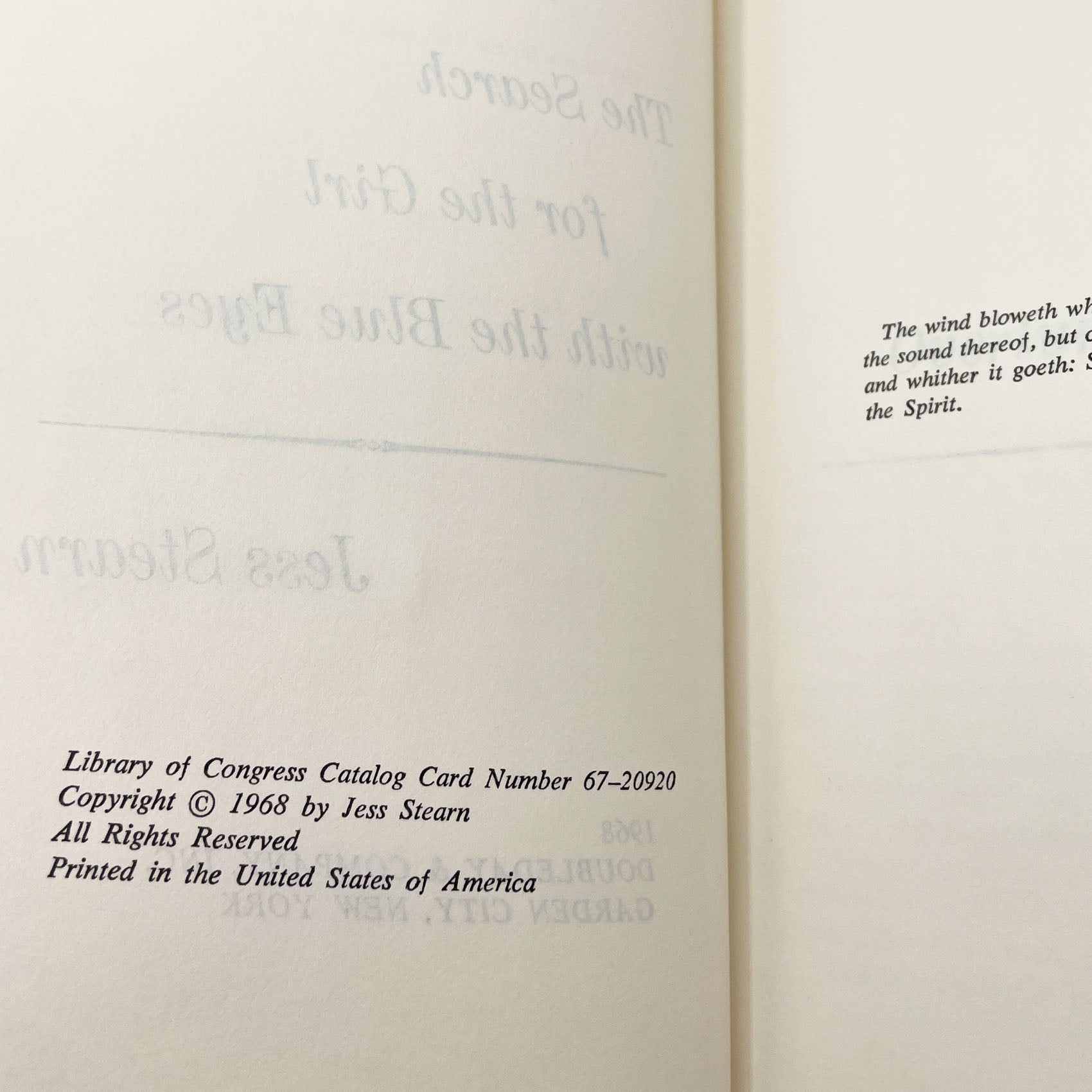 The Search for the Girl With the Blue Eyes: A Venture into Reincarnation by Jess Stearn [FIRST EDITION] 1968 • Doubleday