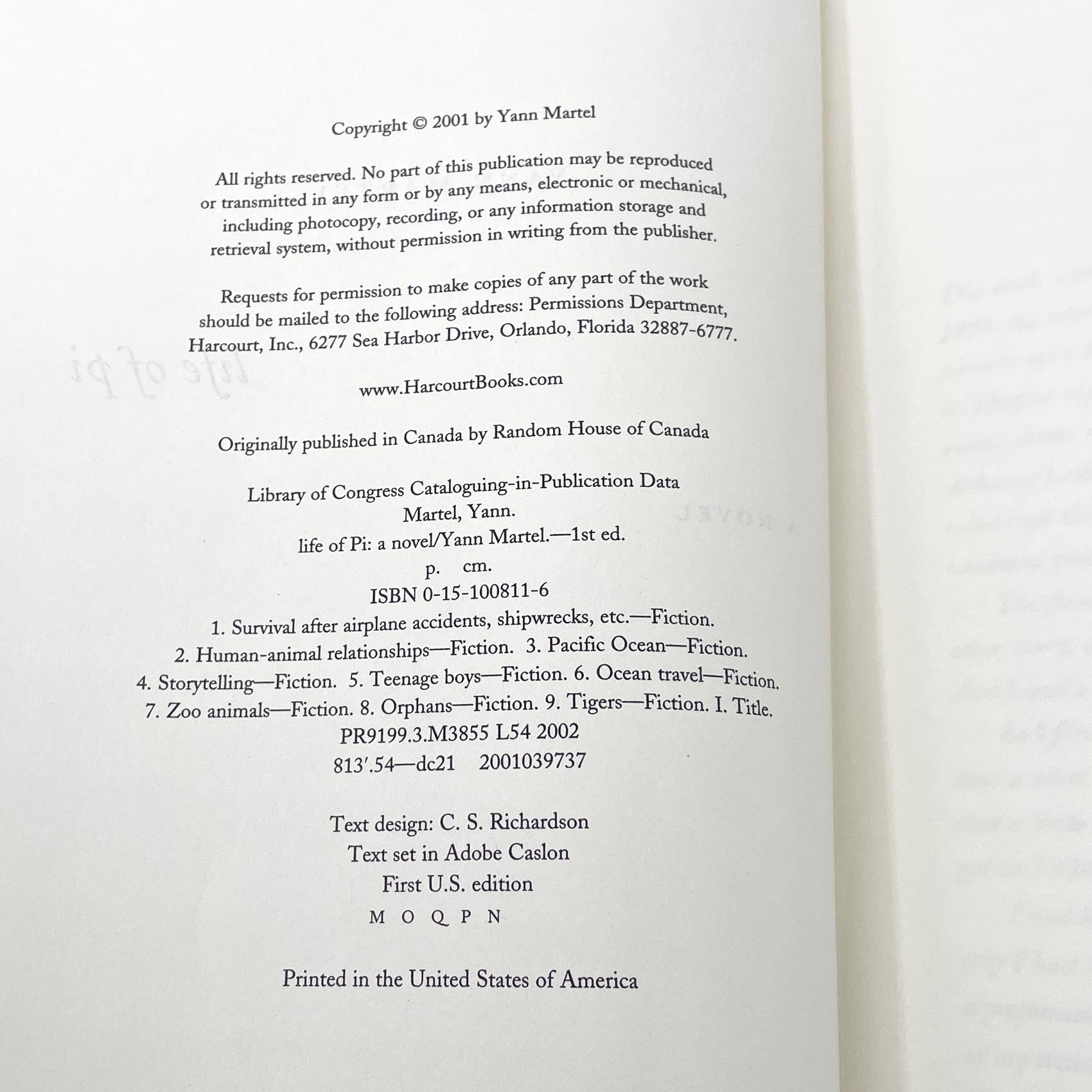 Life of Pi by Yann Martel [FIRST EDITION] 2001 • Harcourt