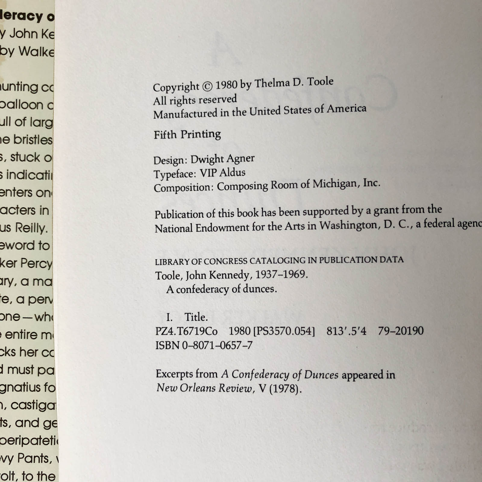 A Confederacy of Dunces by John Kennedy Toole [FIRST EDITION / 1980]