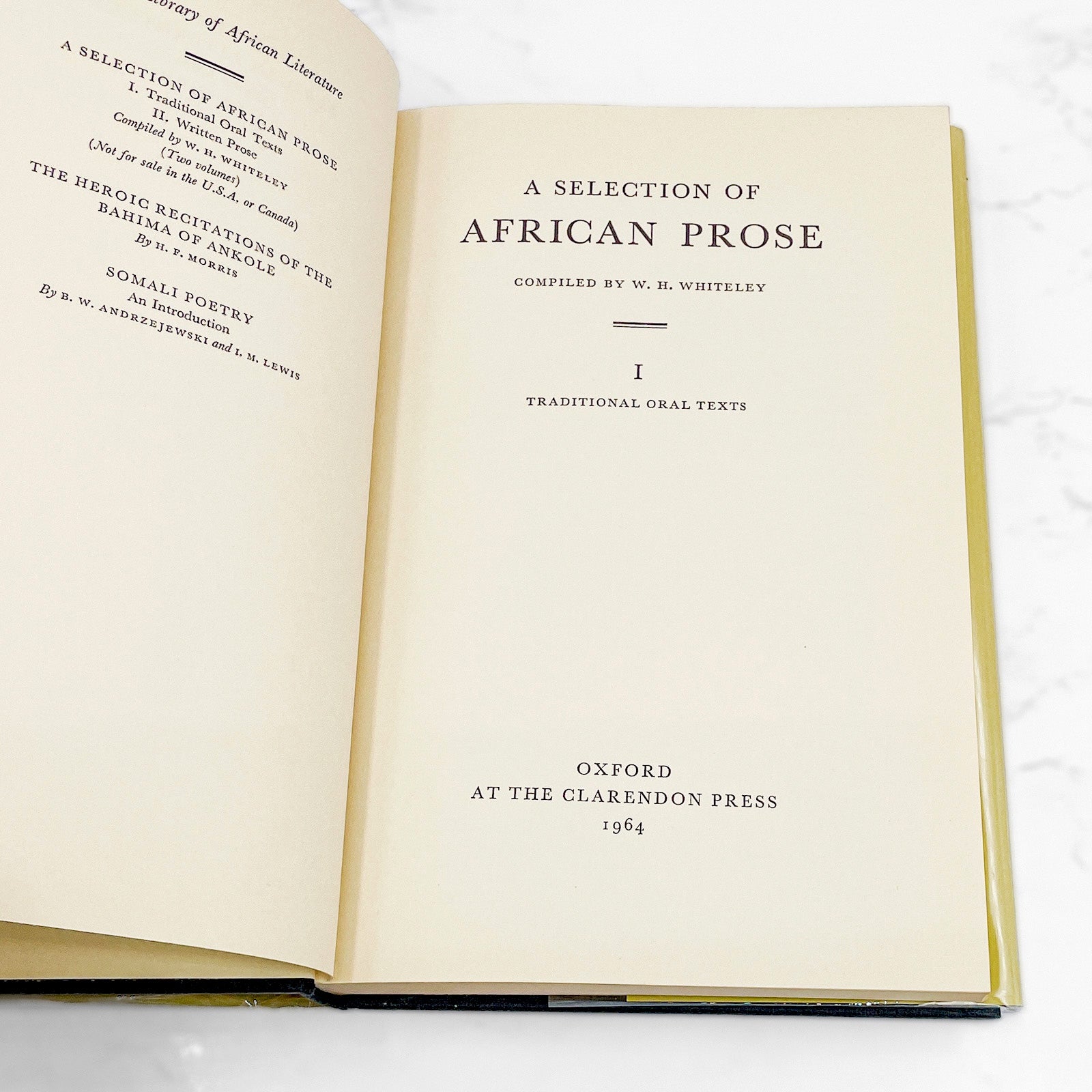 A Selection of African Prose Vol 1: Traditional Oral Texts compiled by W.H. Whiteley [U.K. FIRST EDITION] 1964 • Oxford