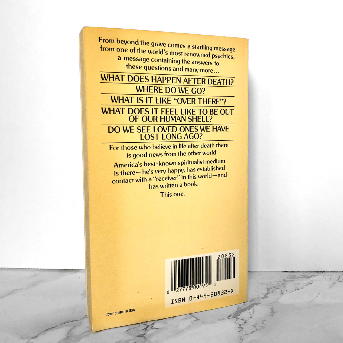 From beyond the grave comes a startling message from one of the world's most renowned psychics, a message containing the answers to these questions and many more...What does happen after death? Where do you go? What is it like "over there?" What does it feel like to be out of our human shell? Do you see loved ones we have lost long ago? America's best-known spiritualist medium has reached the other world. He has established contact with a "receiver" in this world--and has written this book.
