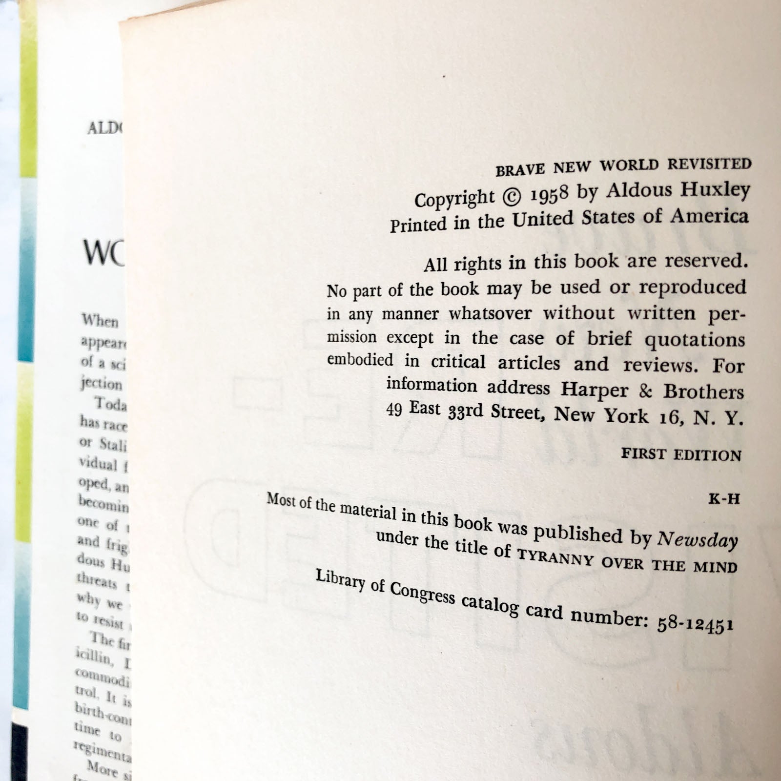 Brave New World Revisited by Aldous Huxley [FIRST EDITION / FIRST PRINTING]