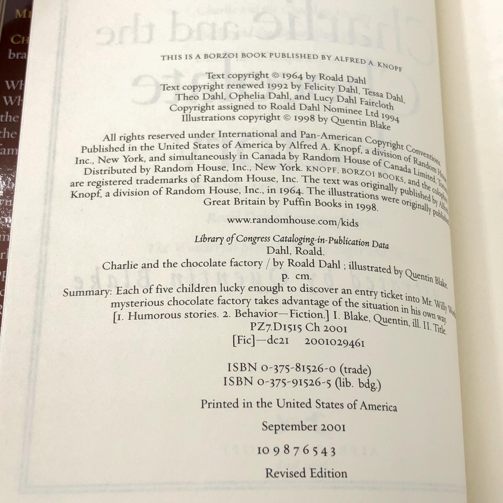 ![Charlie & the Chocolate Factory by Roald Dahl w. illustrations by Quentin Blake [FIRST REVISED EDITION] 2001 • Knopf](http://bookshopapocalypse.com/cdn/shop/files/charlieandthechocolatefactory-9_d0d2f89b-4ac0-44d9-8fbf-8f4374eb9421.jpg?v=1695348019&width=1445)