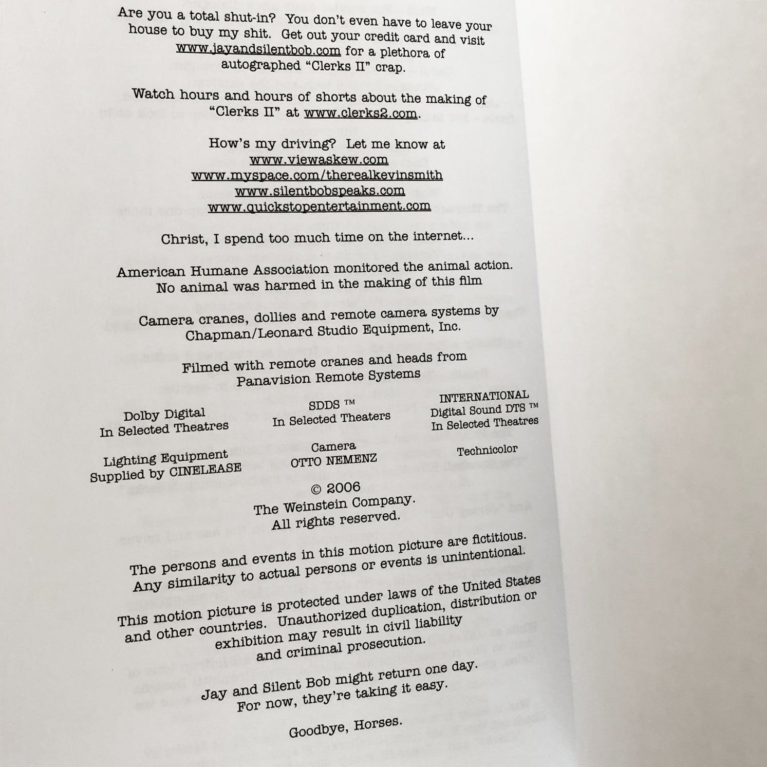 Contains the script from Clerks 2 together with a small section of photos from the movie.