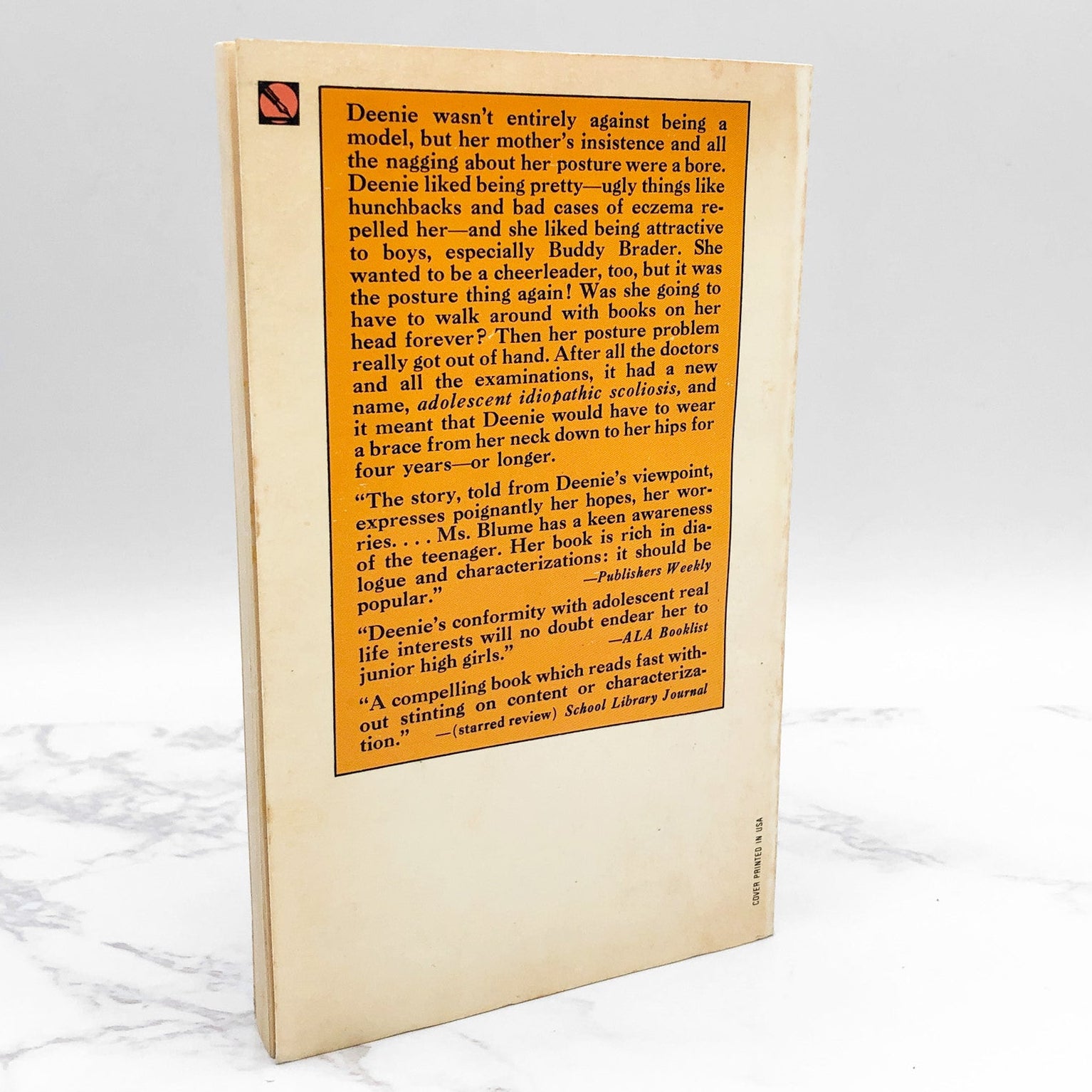 But the words won't come out. And Deenie, beautiful Deenie, who everyone says should be a model, is stuck wearing a brace from her neck to her hips. For four years—or longer. She never worried about how she looked before—how will she ever face the hard times ahead?