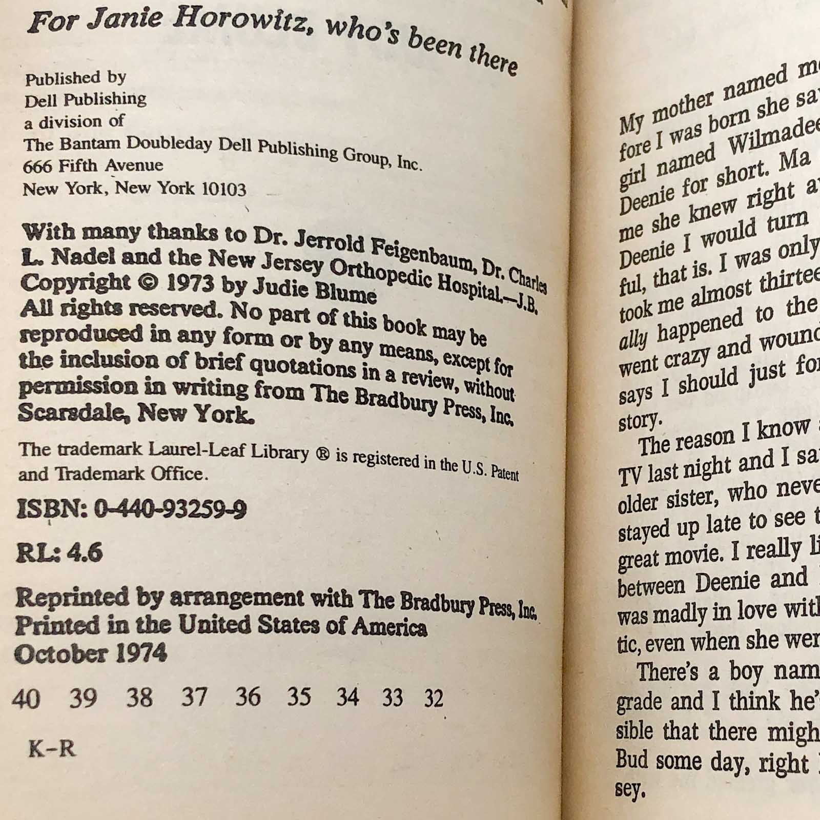 Deenie by Judy Blume [FIRST PAPERBACK EDITION] Dell • Laurel-Leaf