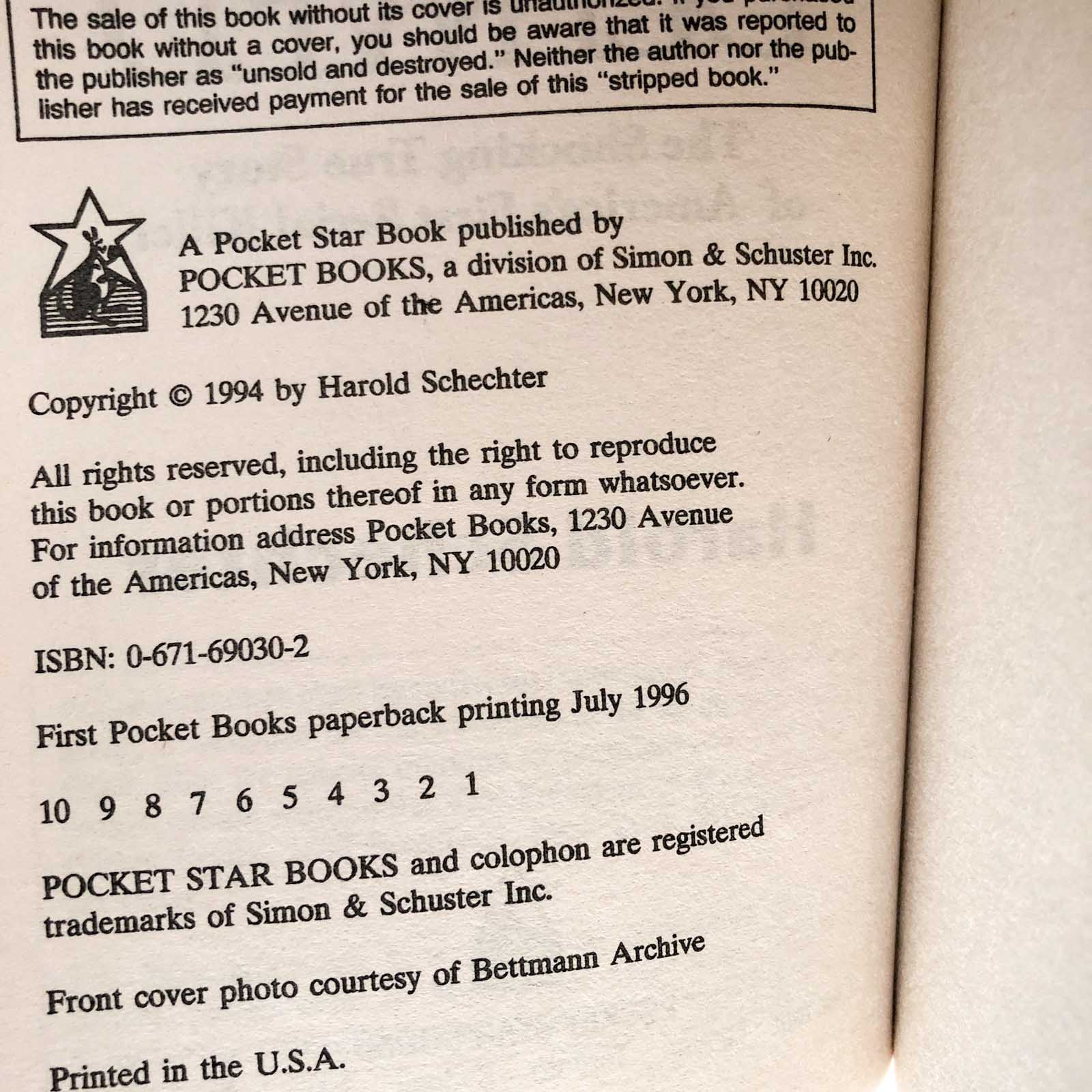 ![Depraved: The Definitive True Story of H.H. Holmes by Harold Schechter [FIRST PAPERBACK PRINTING]](http://bookshopapocalypse.com/cdn/shop/products/depraved-5.jpg?v=1625423785&width=1445)