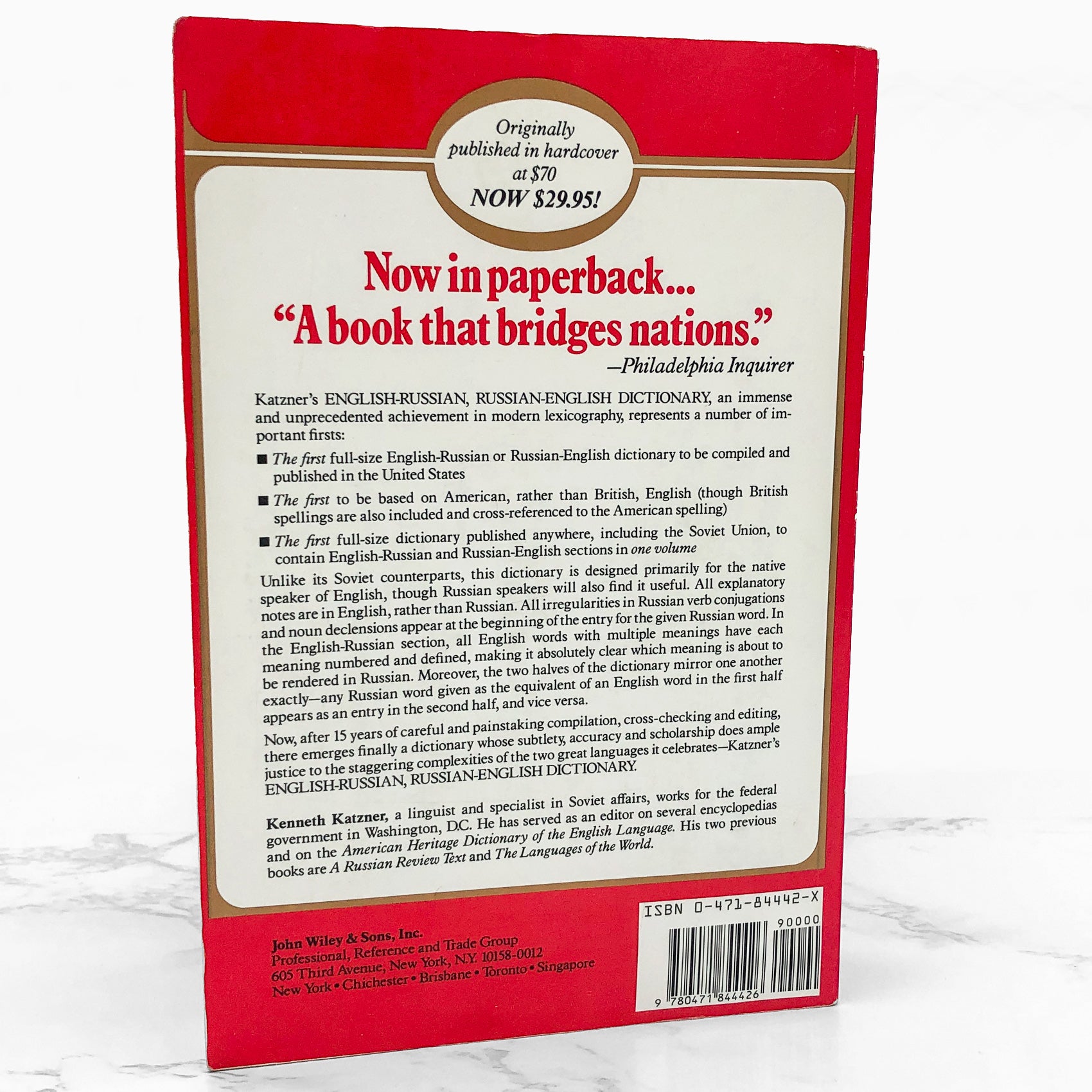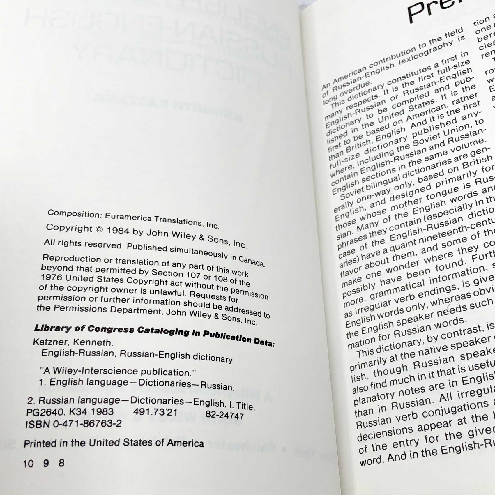 English-Russian • Russian-English Dictionary by Kenneth Katzner [FIRST PAPERBACK EDITION] 1984 • John Wiley & Sons