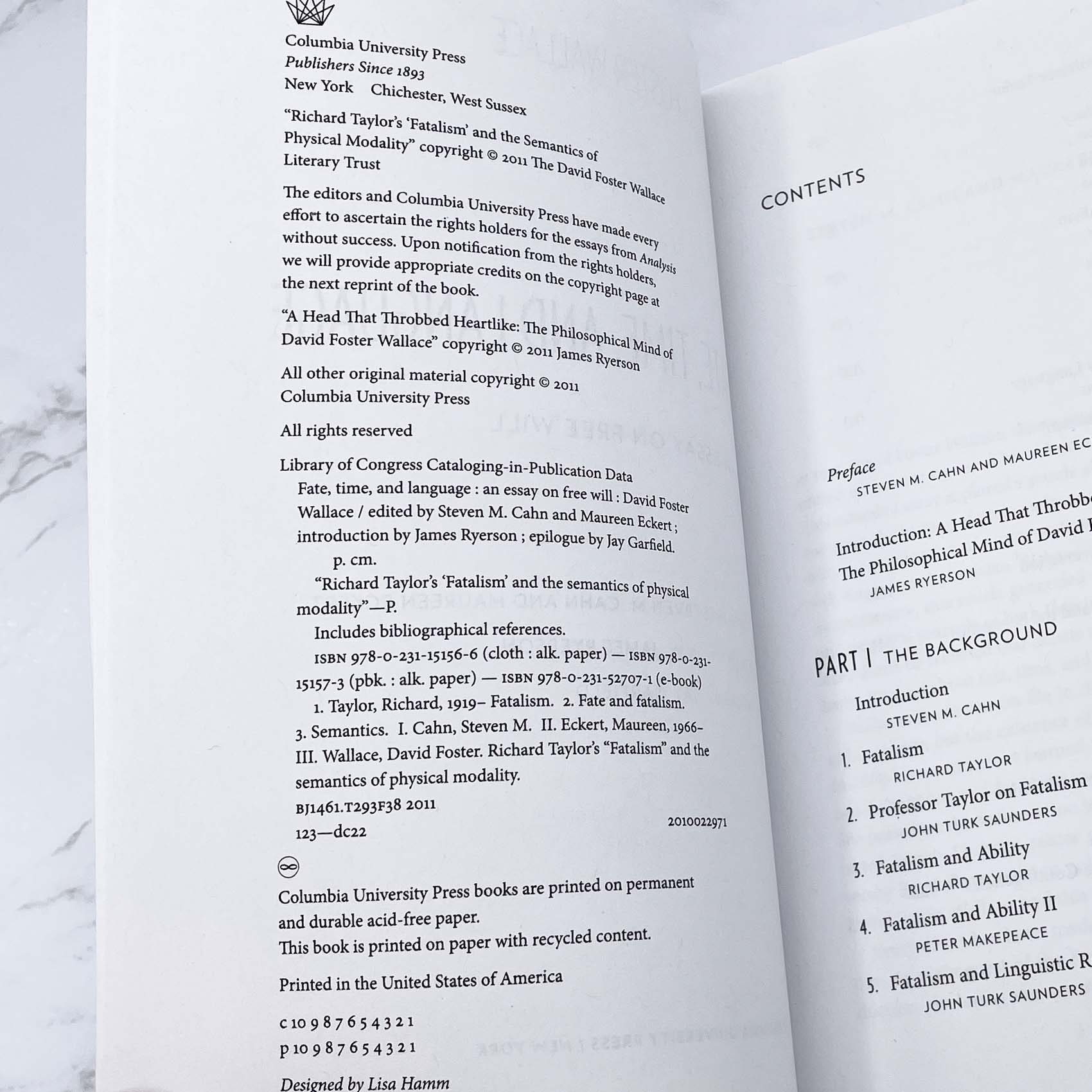 Fate, Time and Language: An Essay on Free Will by David Foster Wallace [FIRST EDITION PAPERBACK] 2010 • Columbia University