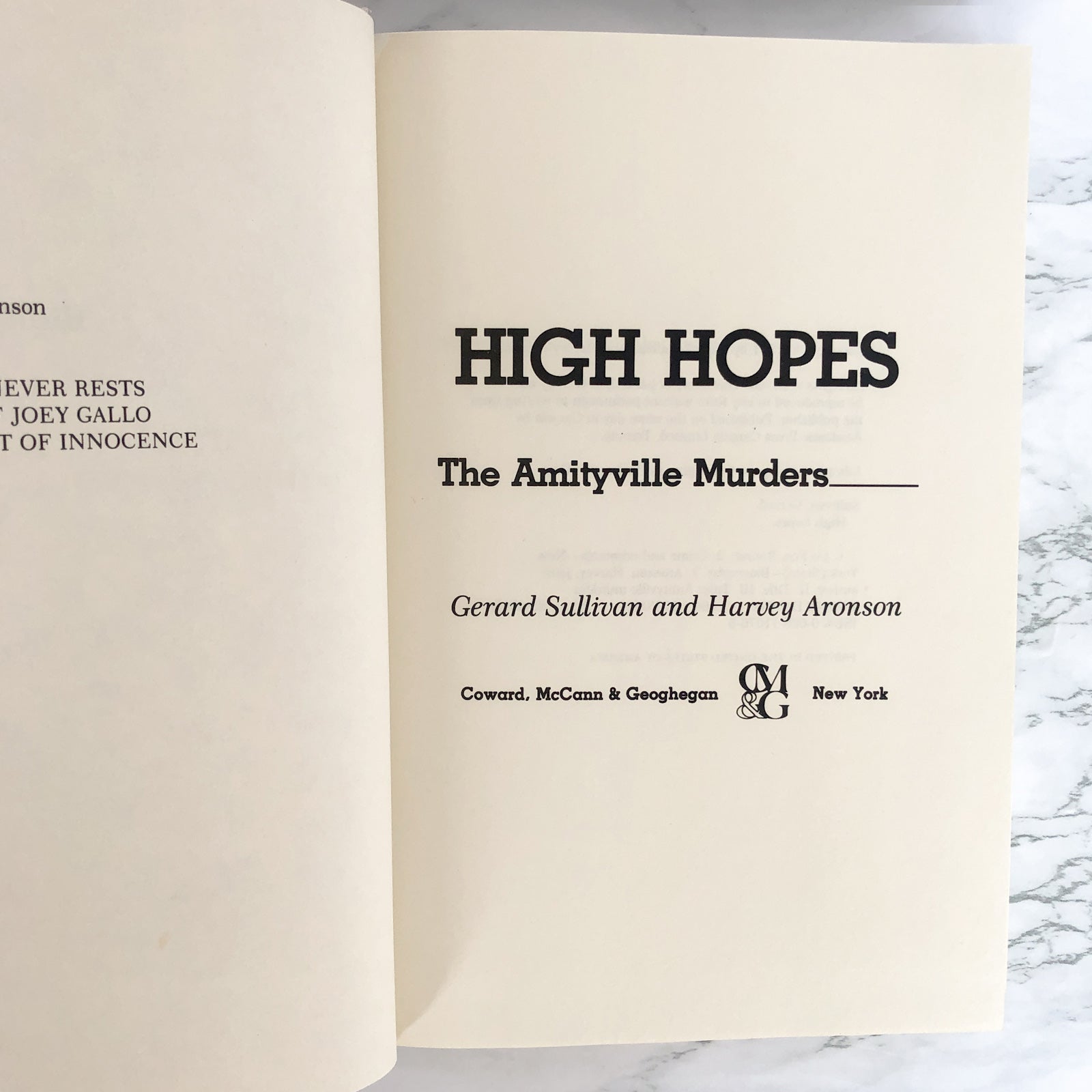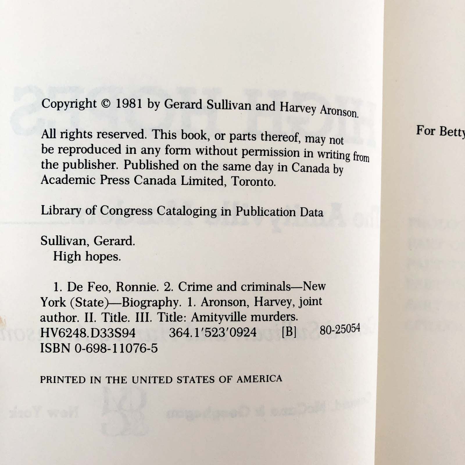 ![High Hopes: The Amityville Murders by Gerard Sullivan & Harvey Aronson [FIRST EDITION] 1981](http://bookshopapocalypse.com/cdn/shop/products/highhopes-8.jpg?v=1624548650&width=1445)