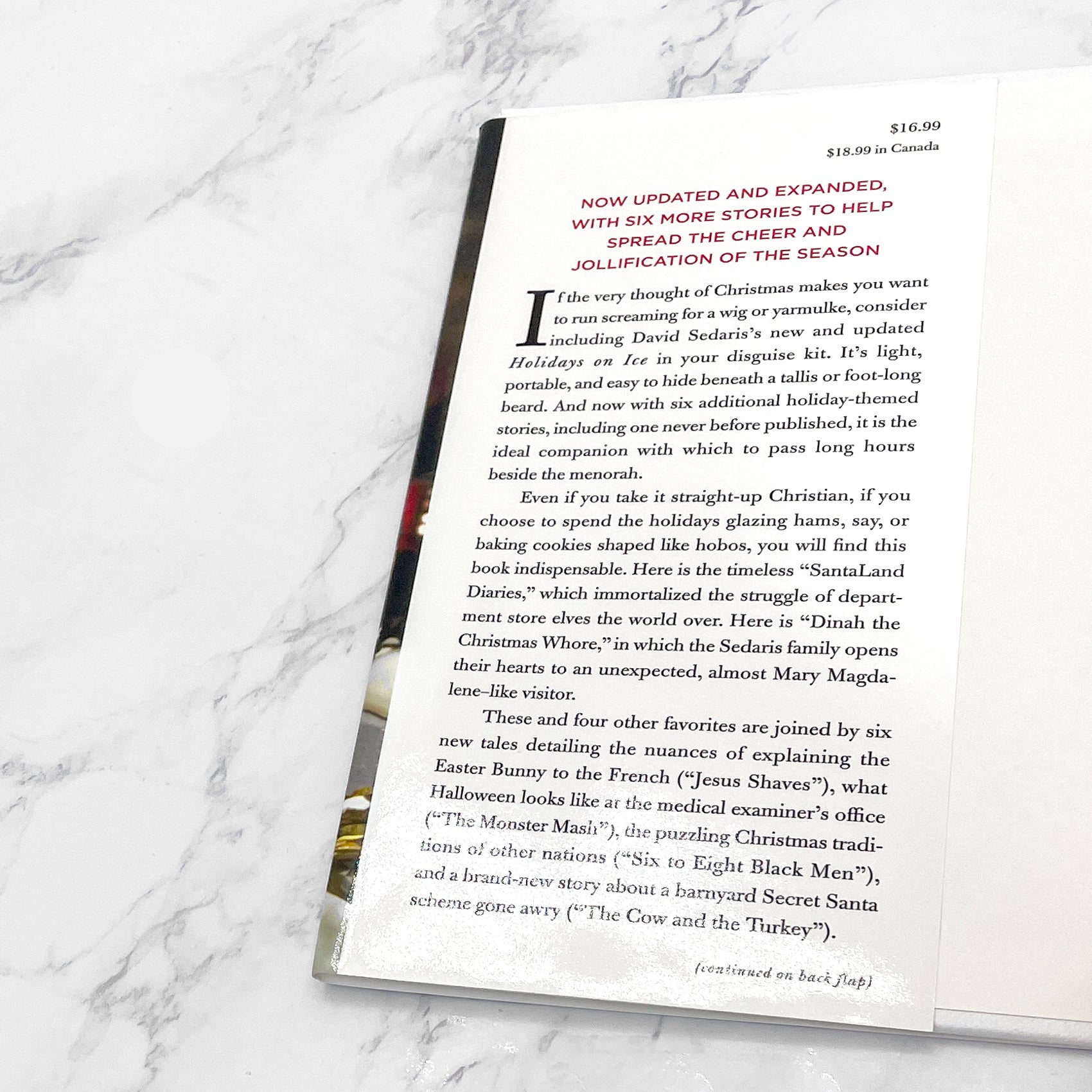 David Sedaris's beloved holiday collection is new again with six more pieces, including a never before published story. Along with such favorites as the diaries of a Macy's elf and the annals of two very competitive families, are Sedaris's tales of tardy trick-or-treaters (Us and Them); the difficulties of explaining the Easter Bunny to the French (Jesus Shaves); what to do when you've been locked out in a snowstorm (Let It Snow); the puzzling Christmas traditions of other nations (Six to Eight Black Men); what Halloween at the medical examiner's looks like (The Monster Mash); and a barnyard secret Santa scheme gone awry (Cow and Turkey).