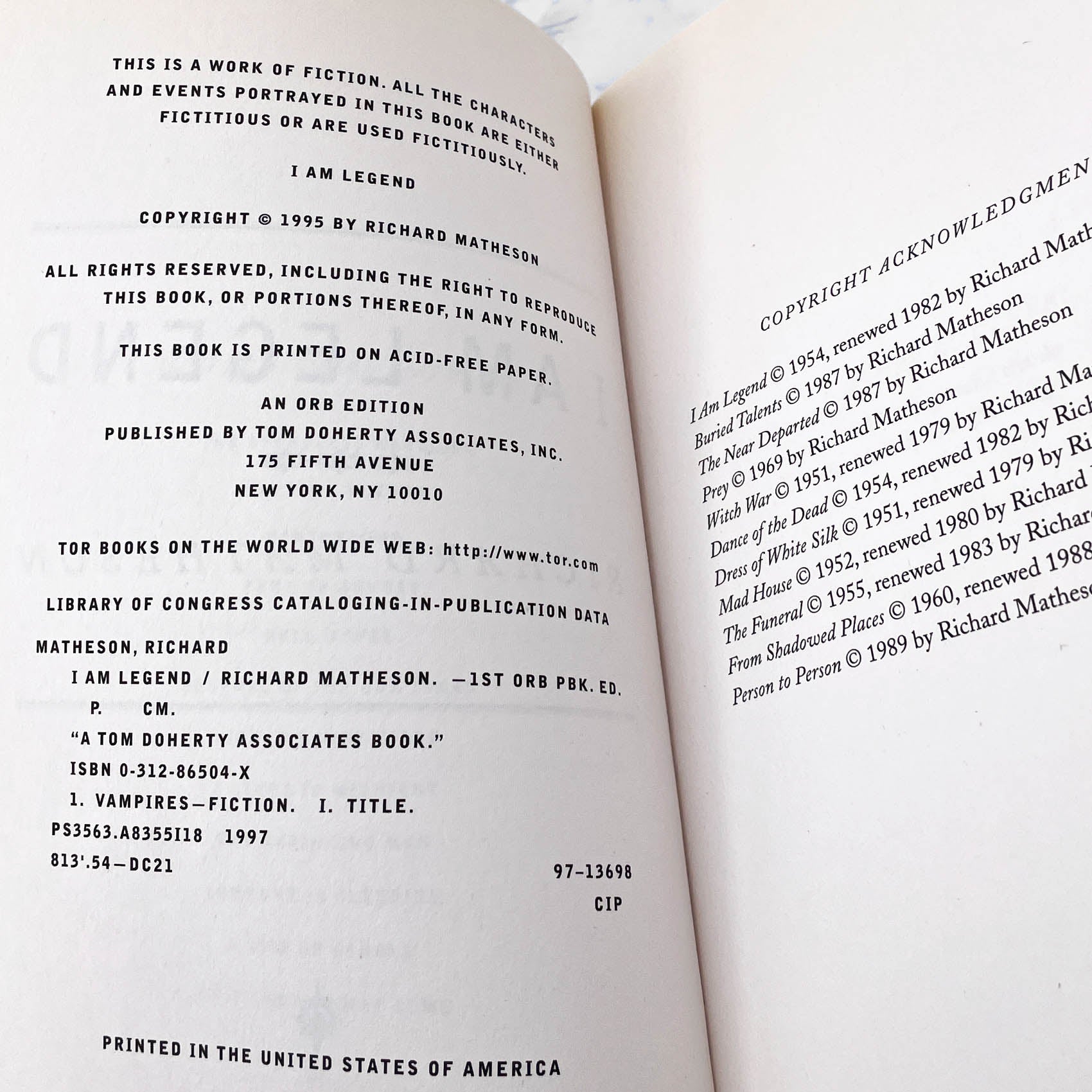 I am Legend by Richard Matheson [TRADE PAPERBACK] 1997 • Orb Books / TOR • 1st Print