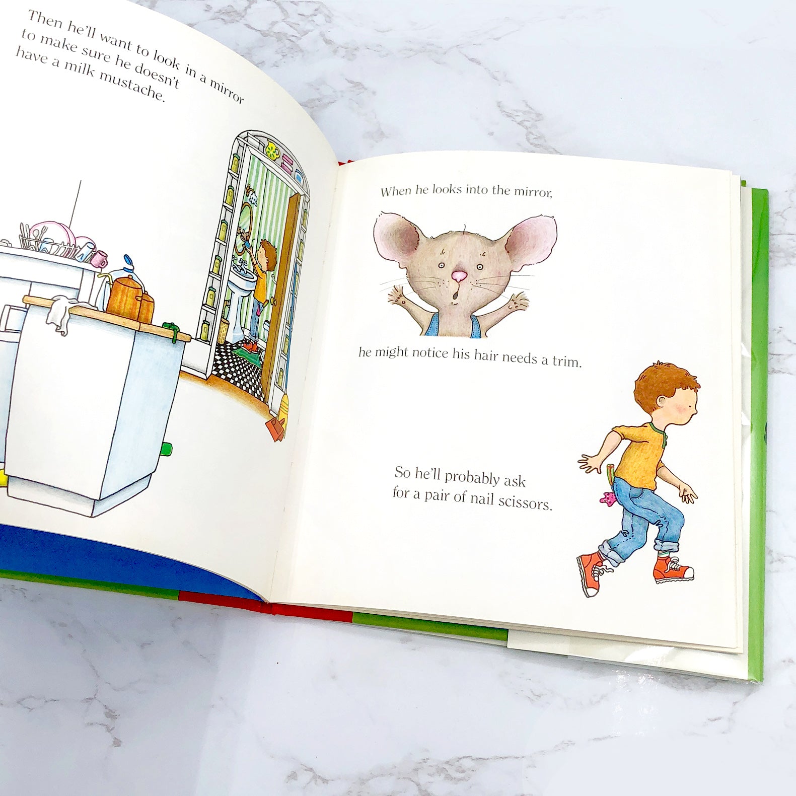 If a hungry little traveler shows up at your house, you might want to give him a cookie. If you give him a cookie, he's going to ask for a glass of milk. He'll want to look in a mirror to make sure he doesn't have a milk mustache, and then he'll ask for a pair of scissors to give himself a trim...