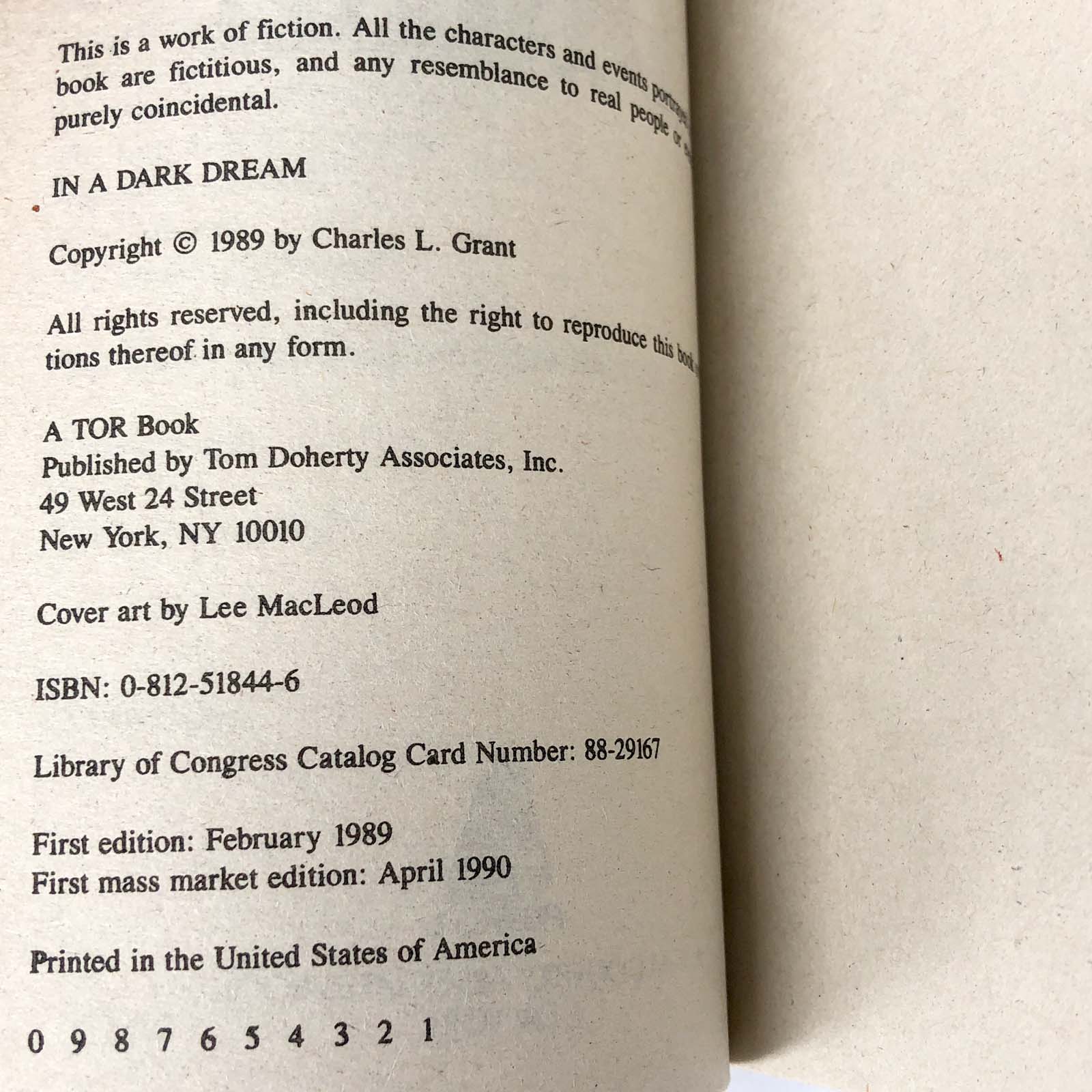 In a Dark Dream by Charles L. Grant [FIRST PAPERBACK PRINTING] 1990 • TOR Horror