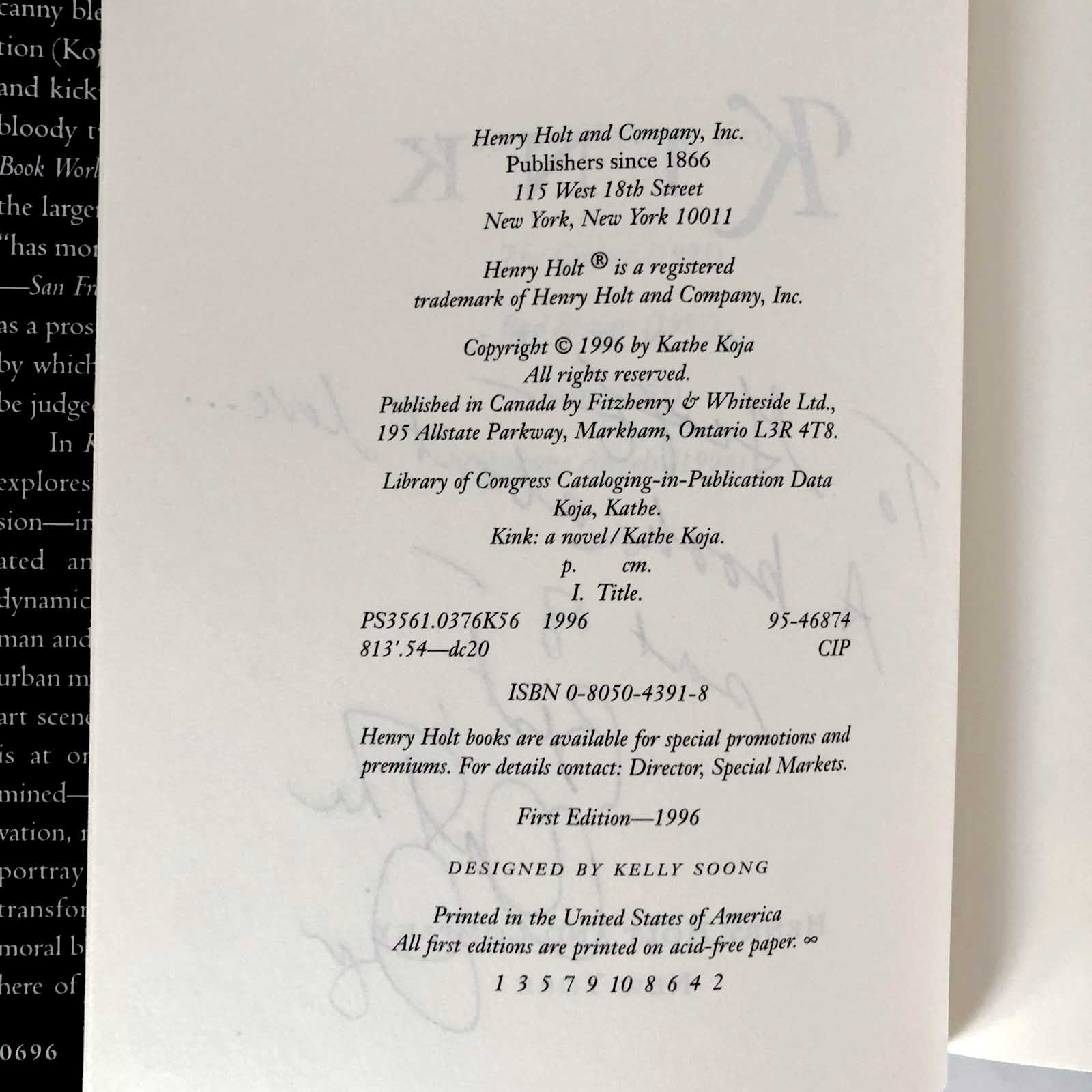 Kink by Kathe Koja SIGNED! [FIRST EDITION / FIRST PRINTING] 1996