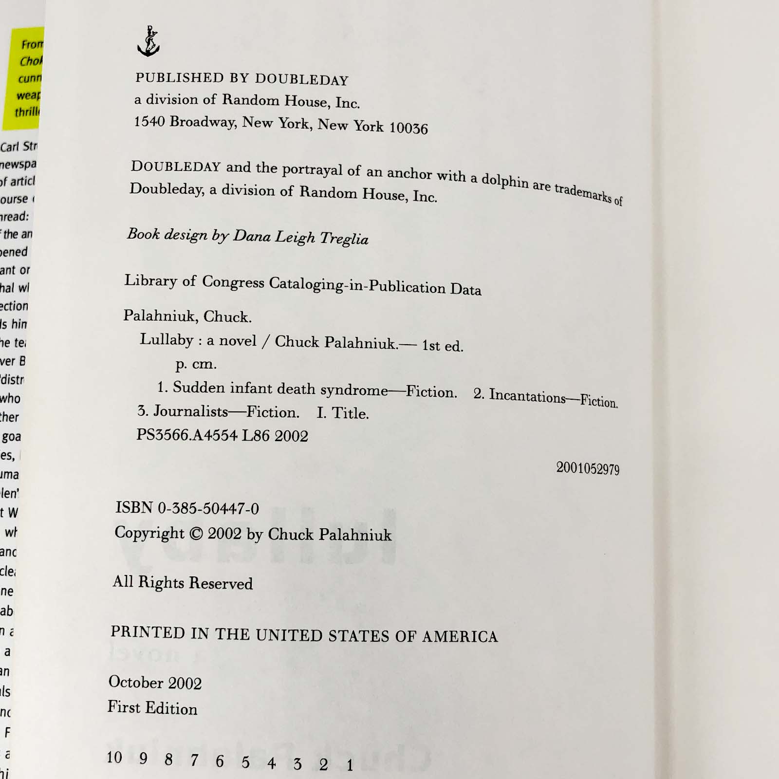 Lullaby by Chuck Palahniuk SIGNED! [FIRST EDITION / FIRST PRINTING] 2002