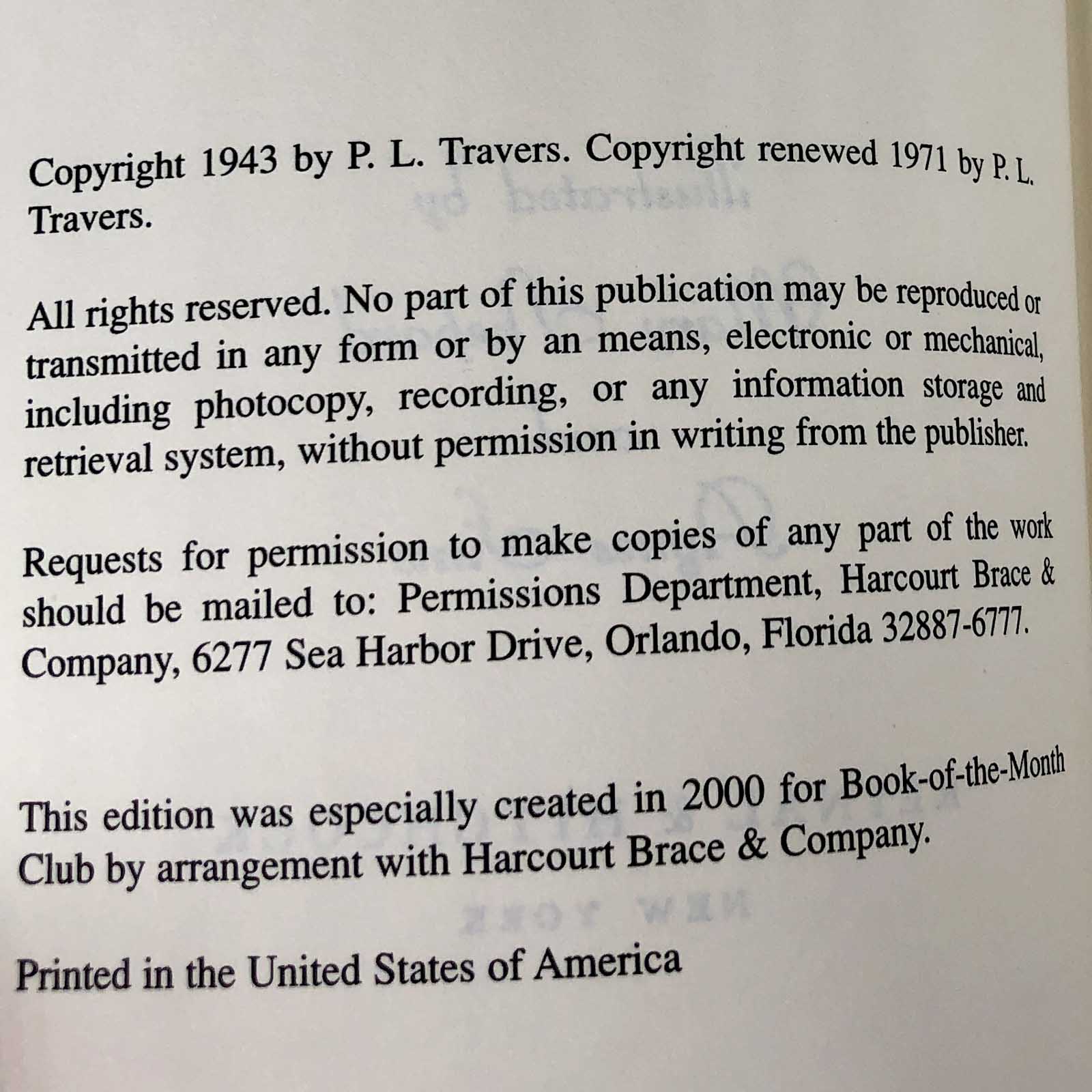 Mary Poppins Opens the Door by P.L. Travers [RARE BOOK CLUB EDITION] 2000