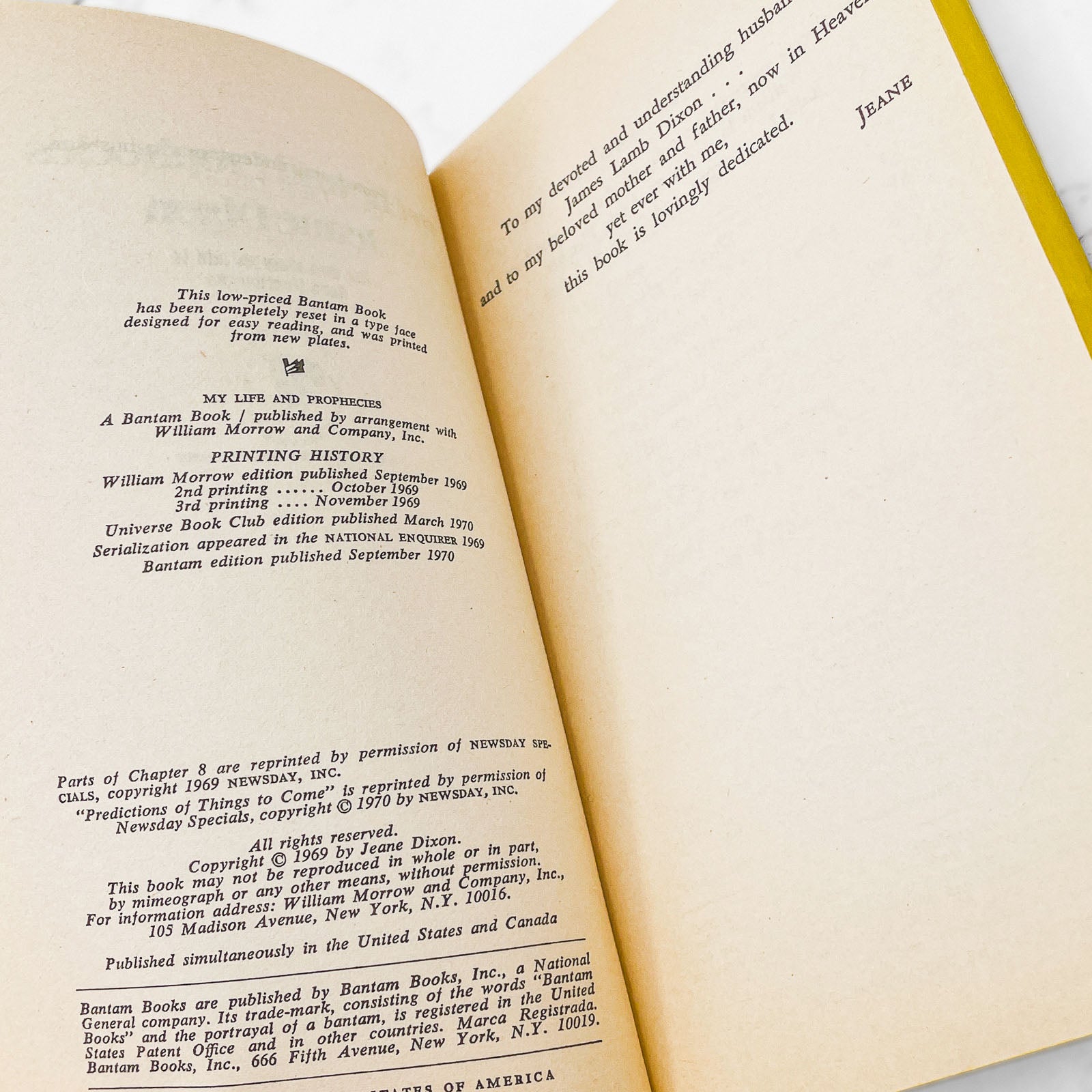 My Life and Prophecies by Jeane Dixon [FIRST PAPERBACK PRINTING] 1970 • Bantam