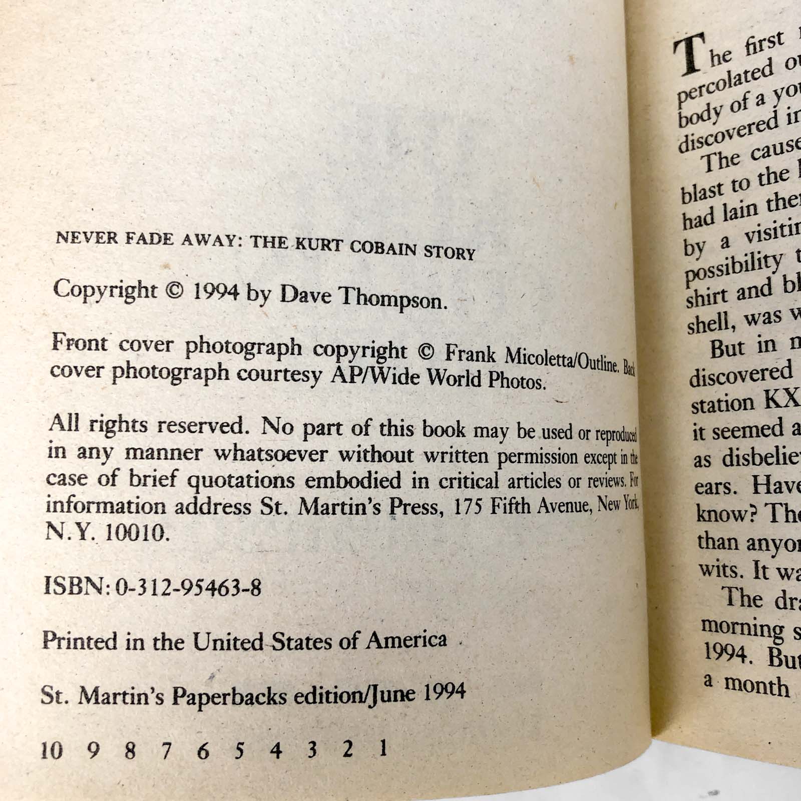 Never Fade Away: The Kurt Cobain Story by Dave Thompson [FIRST EDITION PAPERBACK] 1994