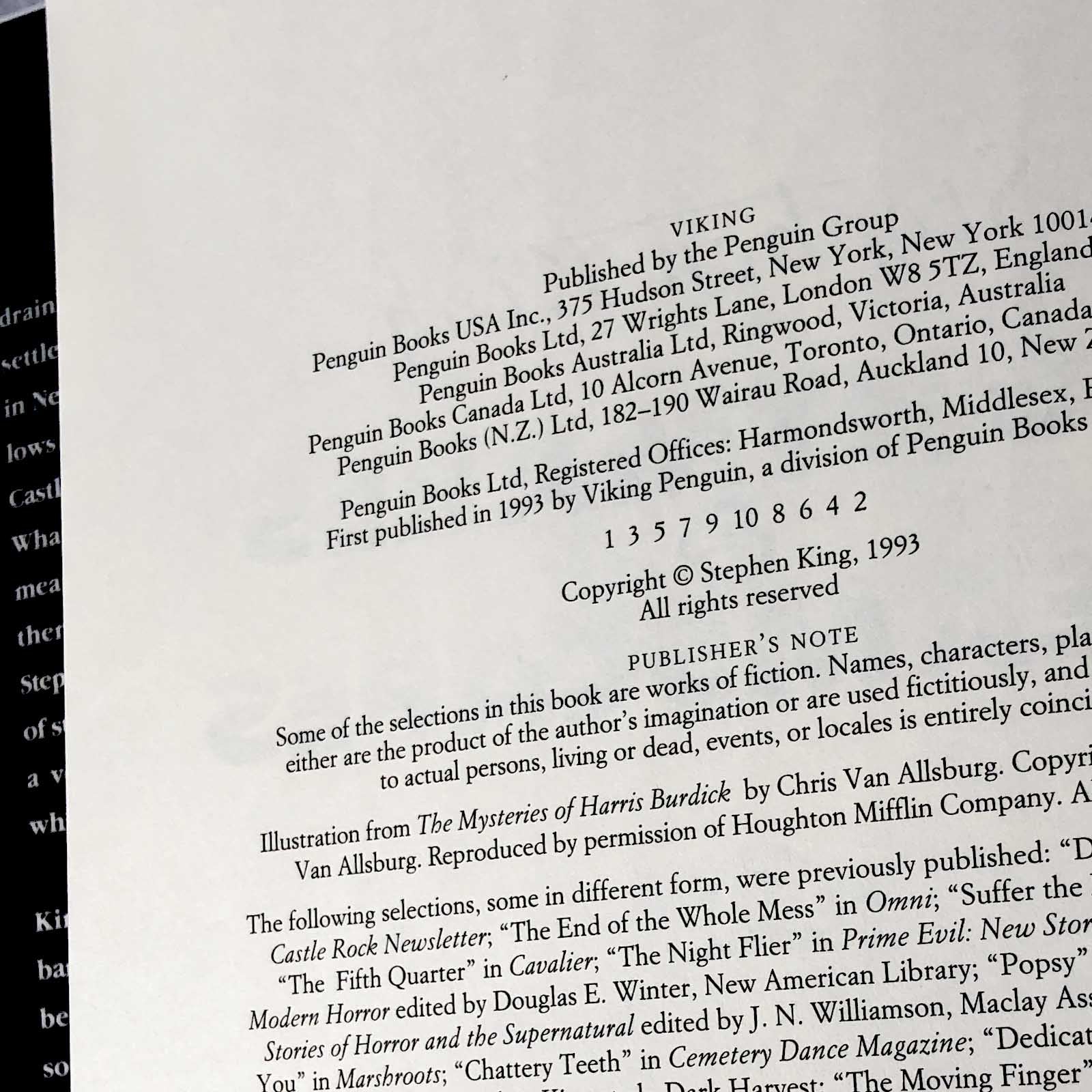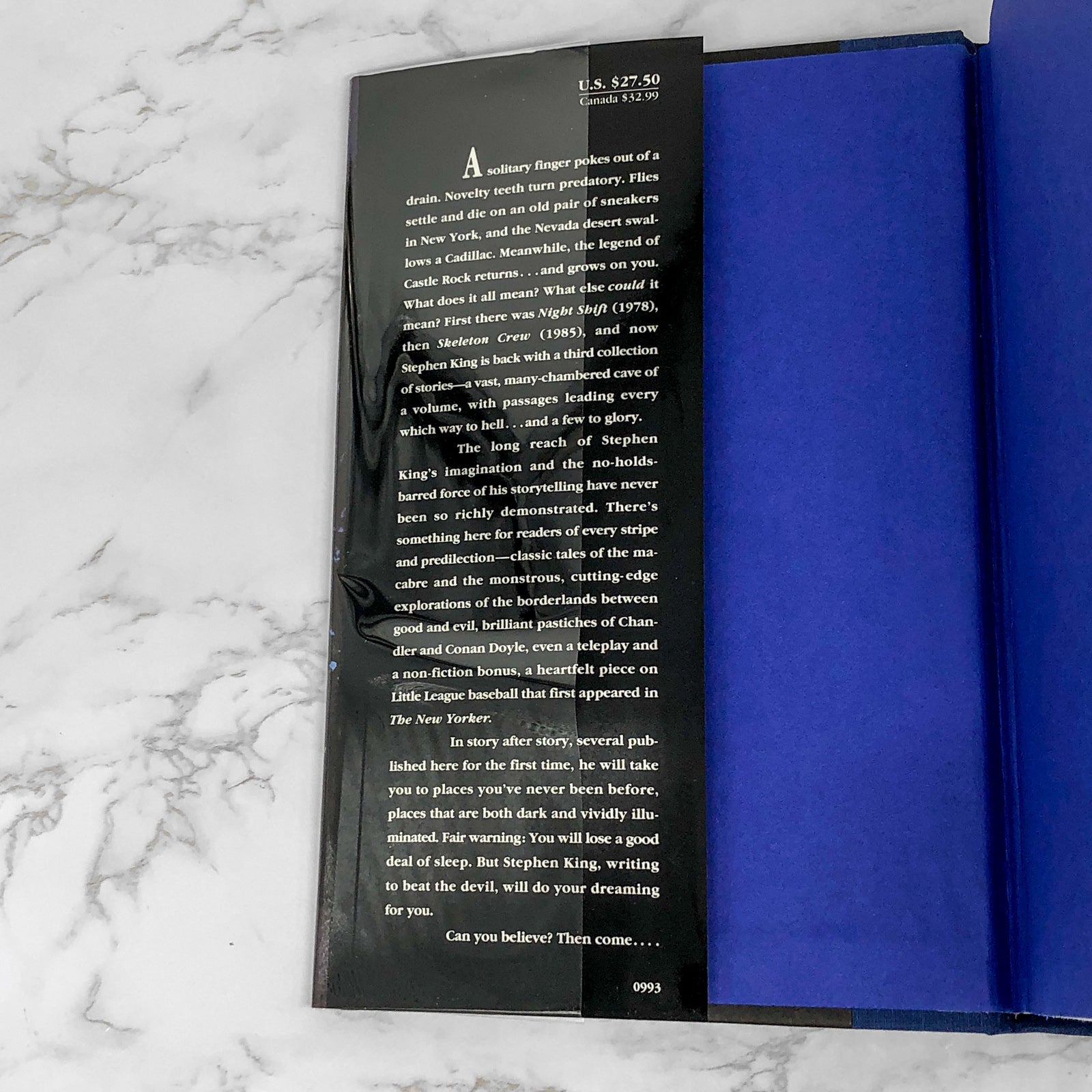 A solitary finger pokes out of a drain. Novelty teeth turn predatory. Flies settle and die on an old pair of sneakers in New York, and the Nevada desert swallows a Cadillac. Meanwhile the legend of Castle Rock returns... and grows on you. What does it all mean? What else could it mean? First there was Night Shift (1978), then Skeleton Crew (1985), and now Stephen King is back with a third collection of stories - a vast, many-chambered cave of a volume, with passages leading every which way to hell... and a few to glory.