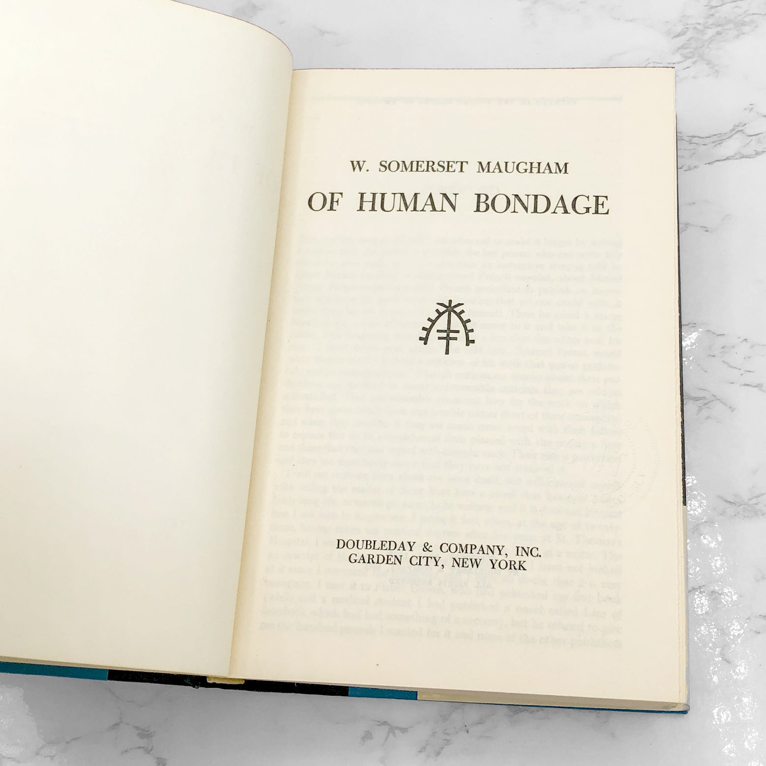 Of Human Bondage by W. Somerset Maugham [FIRST BOOK CLUB EDITION] 1936 • Doubleday & Company