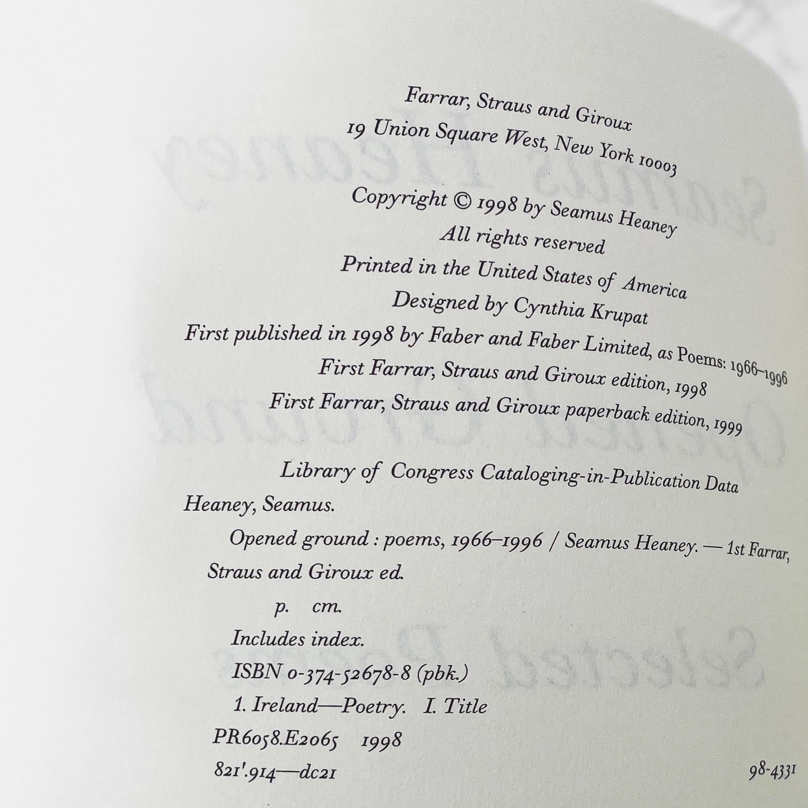 Opened Ground: Selected Poems 1966-1996 by Seamus Heaney [FIRST U.S. PAPERBACK PRINTING] 1998 • FSG