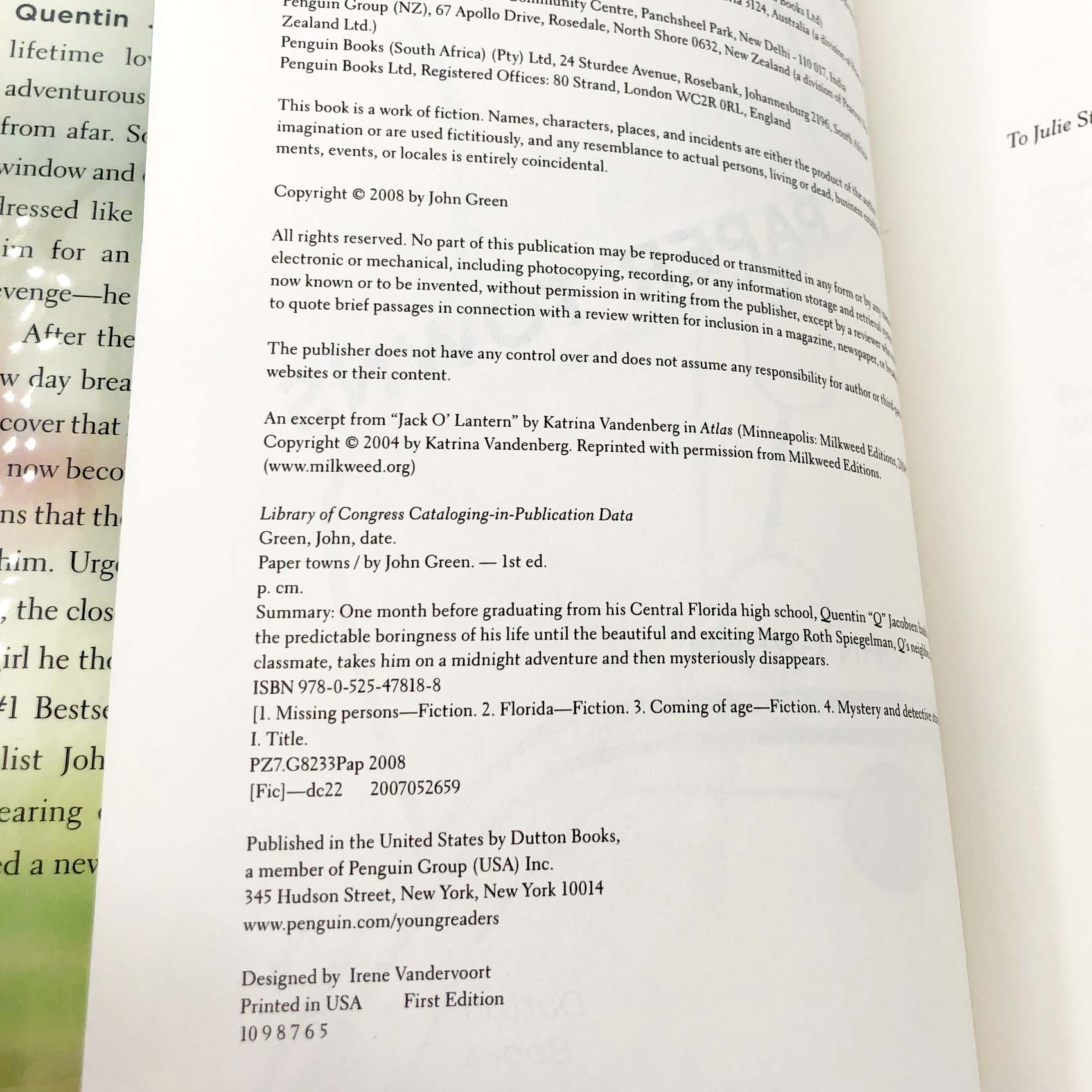 Paper Towns by John Green [FIRST EDITION • SECOND STATE] 2008 • Dutton