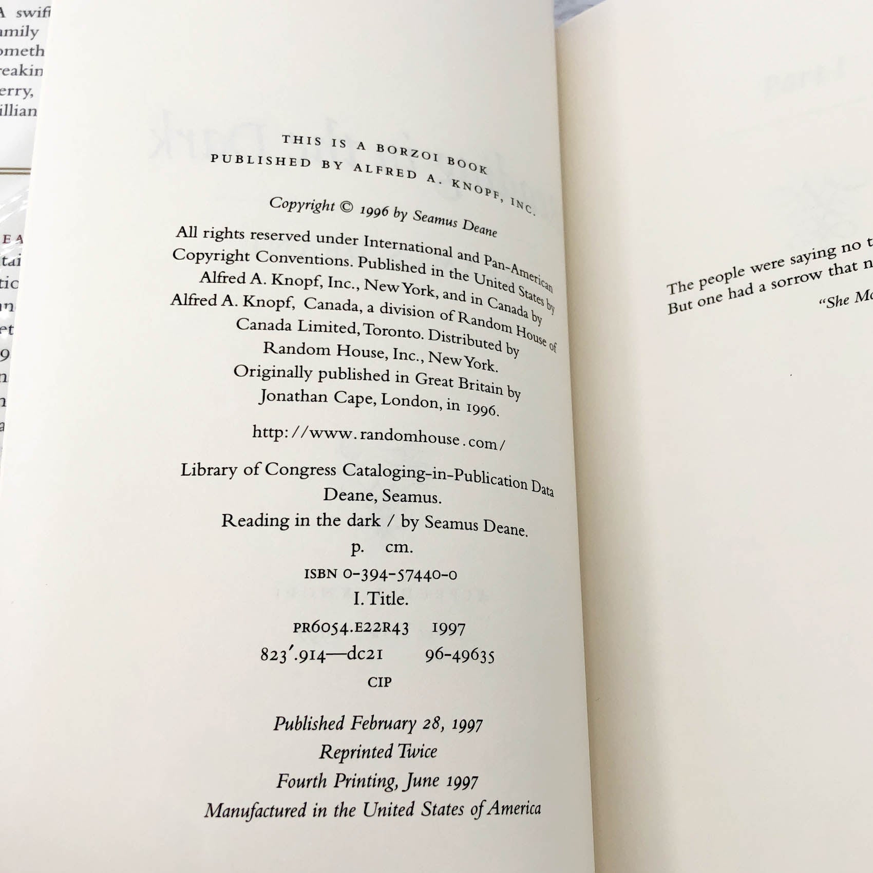 Reading in the Dark by Seamus Deane [U.S. FIRST EDITION] 1997 • Knopf