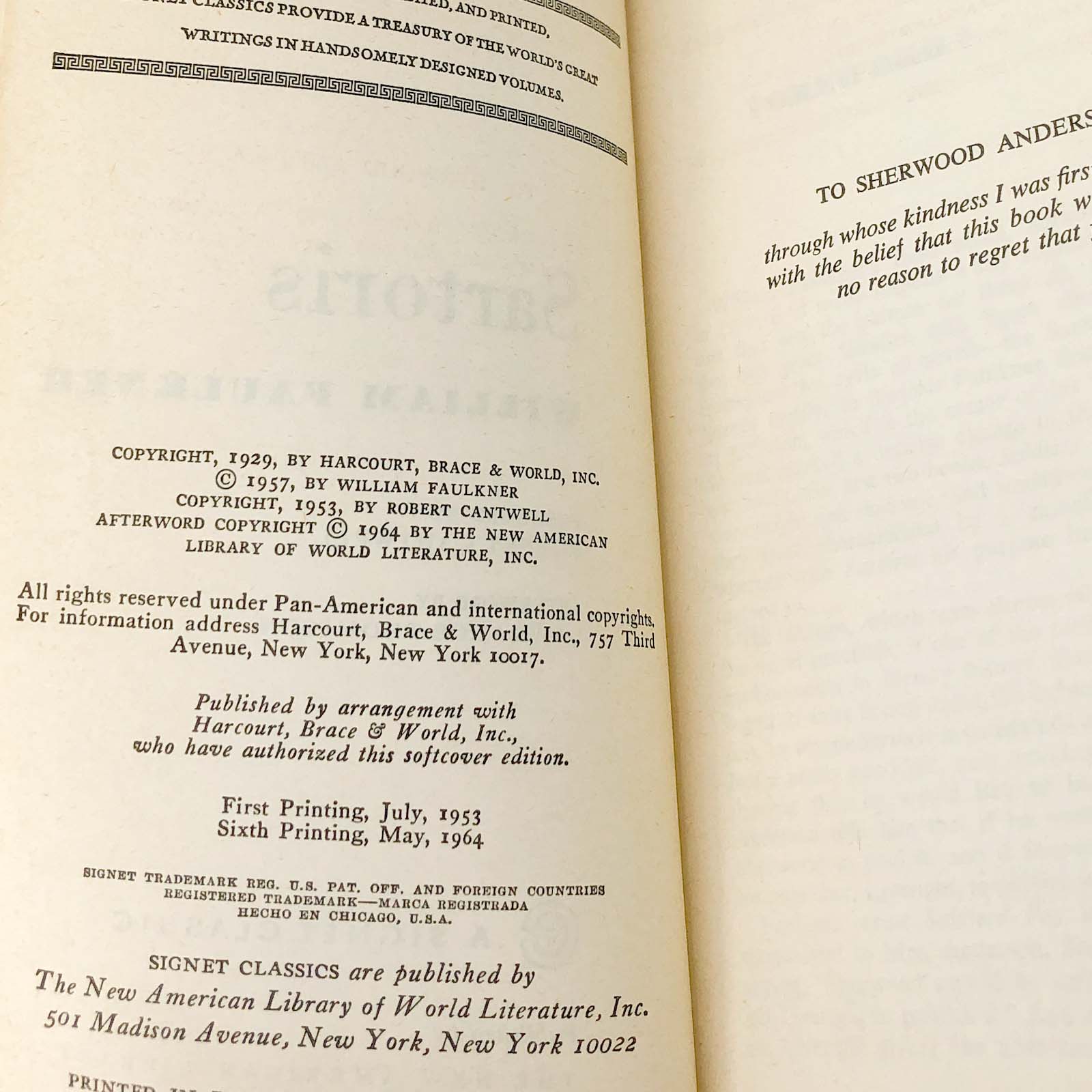 Sartoris by William Faulkner [1964 PAPERBACK] • Signet Classics