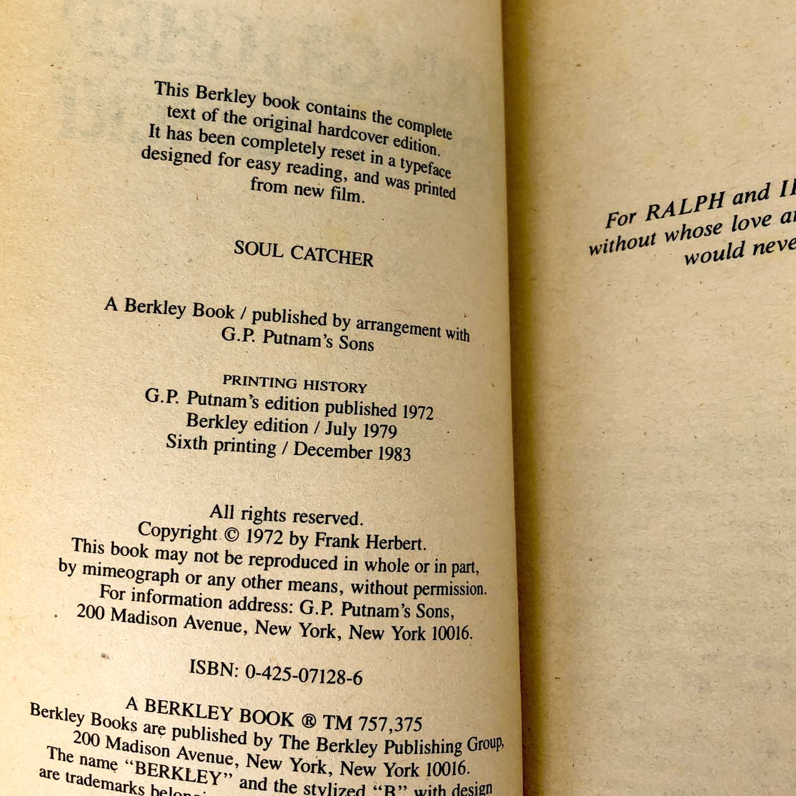 Soul Catcher by Frank Herbert [1983 PAPERBACK] Berkley