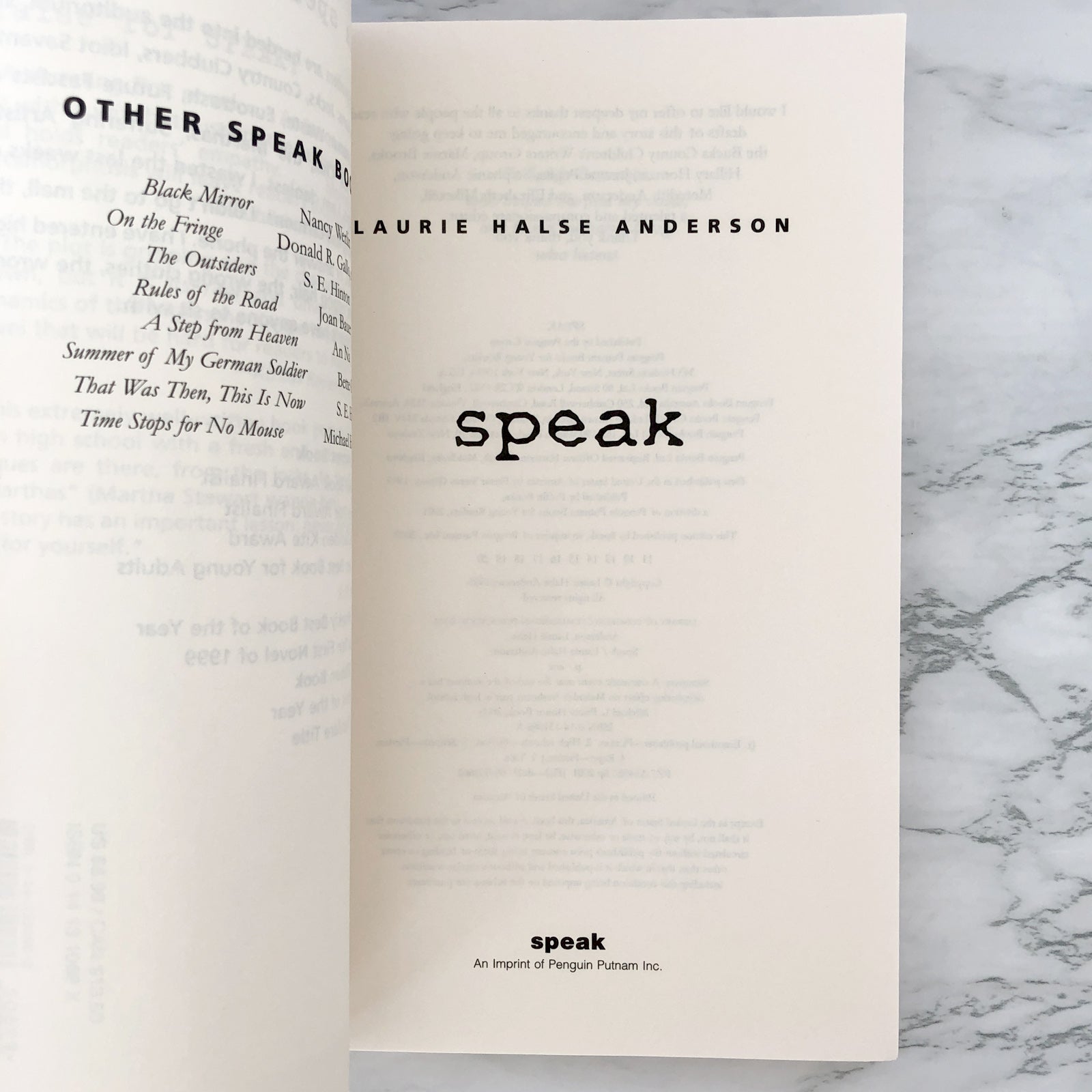 ![Speak by Laurie Halse Anderson [TRADE PAPERBACK] 2003 • Penguin Putnam](http://bookshopapocalypse.com/cdn/shop/products/speak-5.jpg?v=1615011861&width=1445)