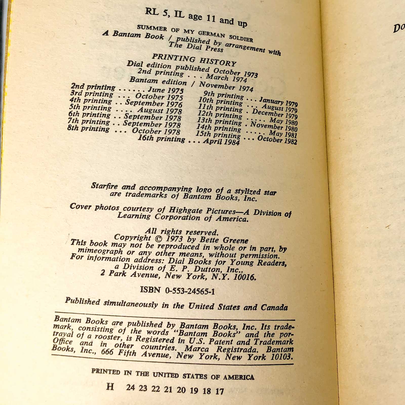 ![Summer of My German Soldier by Bette Greene [1984 MOVIE TIE-IN PAPERBACK]](http://bookshopapocalypse.com/cdn/shop/products/summerofmygermansoldier-5.jpg?v=1658981945&width=1445)