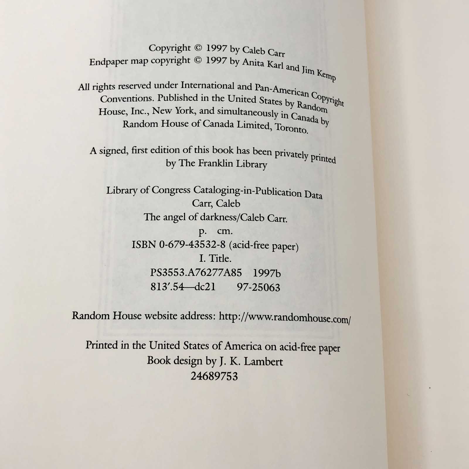 The Angel of Darkness [Alienist #2] by Caleb Carr [FIRST EDITION] 1997