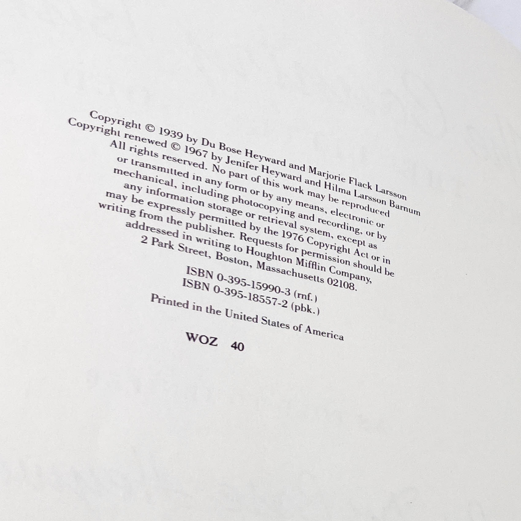 FIRST EDITION • 40th PRINTING [1976] HOUGHTON MIFFLIN