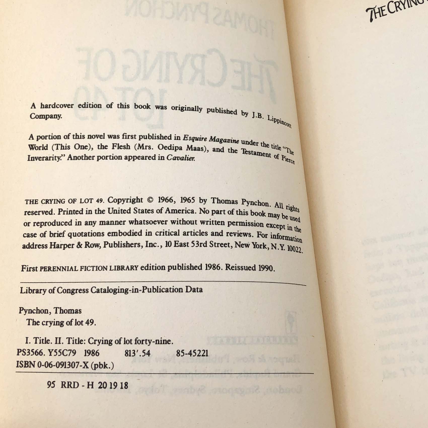![The Crying of Lot 49 by Thomas Pynchon [TRADE PAPERBACK] 1990 • Perennial](http://bookshopapocalypse.com/cdn/shop/files/Cryingoflot49-6.jpg?v=1722307194&width=1445)