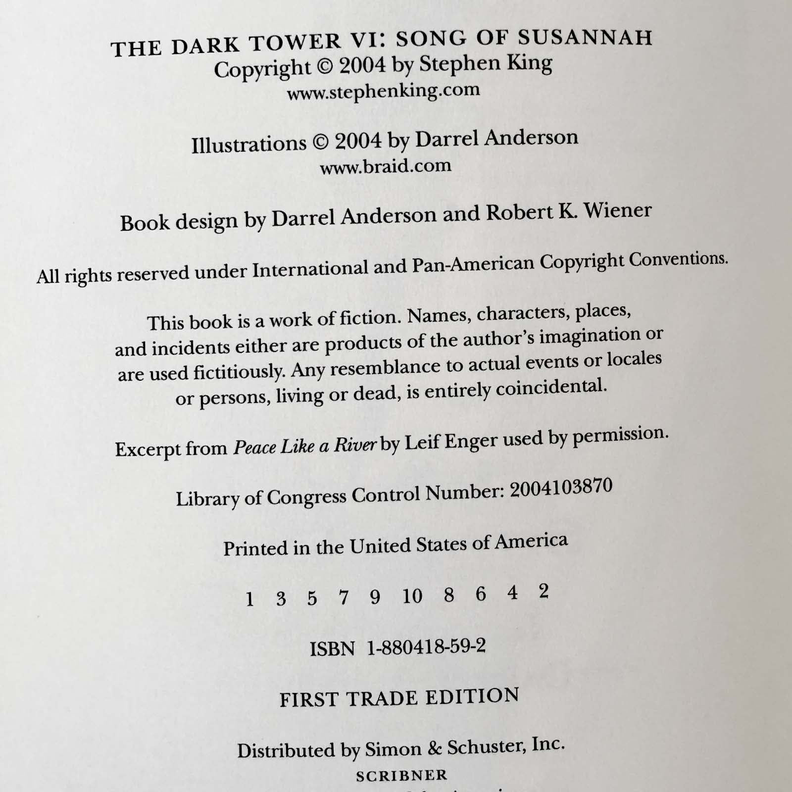 The Dark Tower VI: Song of Susannah by Stephen King [FIRST EDITION / FIRST PRINTING] 2004