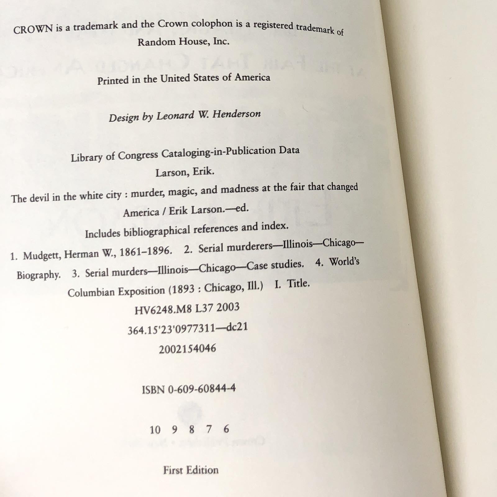 ![The Devil in the White City by Erik Larson [FIRST EDITION PAPERBACK] 2003](http://bookshopapocalypse.com/cdn/shop/products/devilinthewhitecitypb-7.jpg?v=1650441496&width=1445)