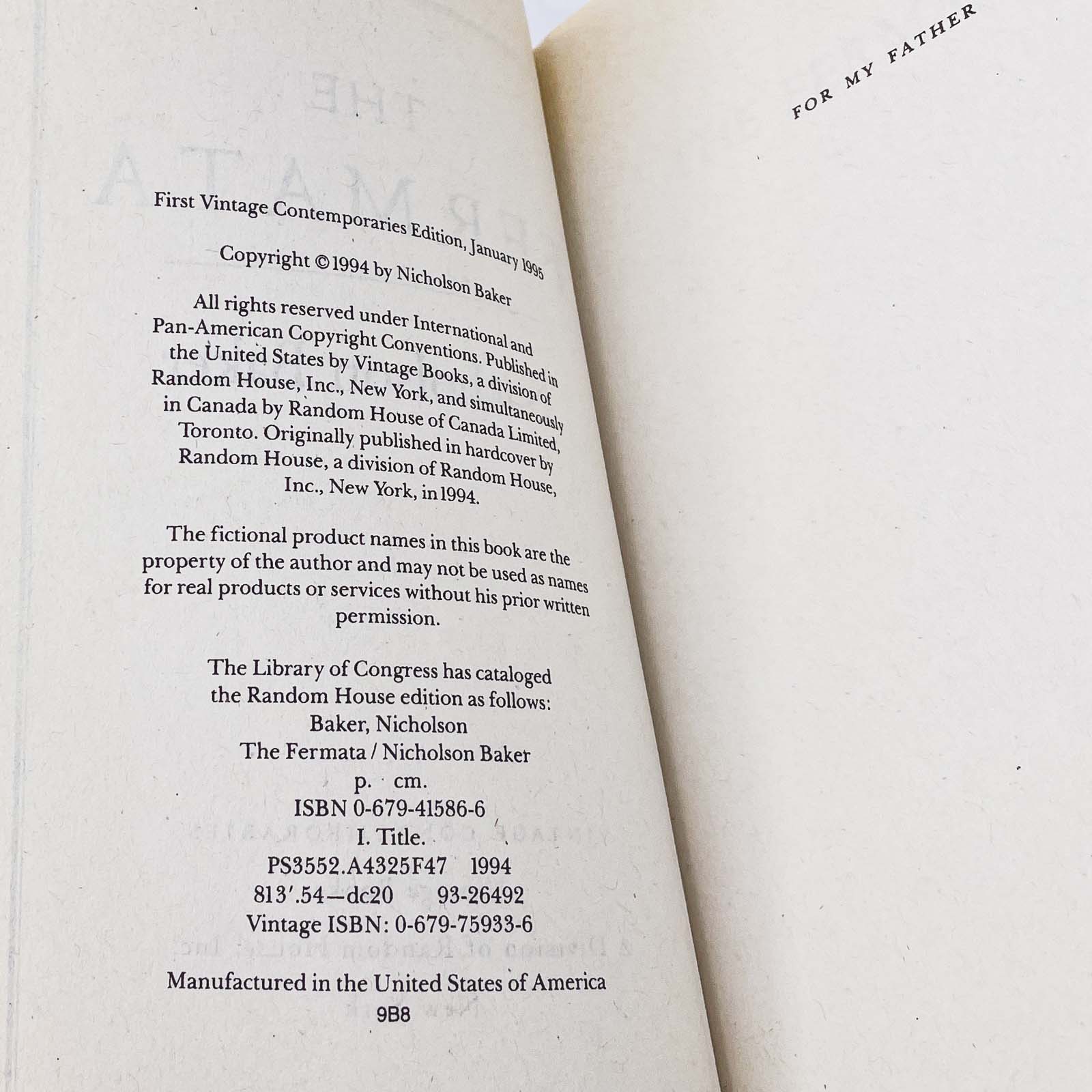 ![The Fermata by Nicholson Baker [FIRST PAPERBACK EDITION] 1995 • Vintage Contemporaries](http://bookshopapocalypse.com/cdn/shop/files/thefermata-6.jpg?v=1772013341&width=1445)