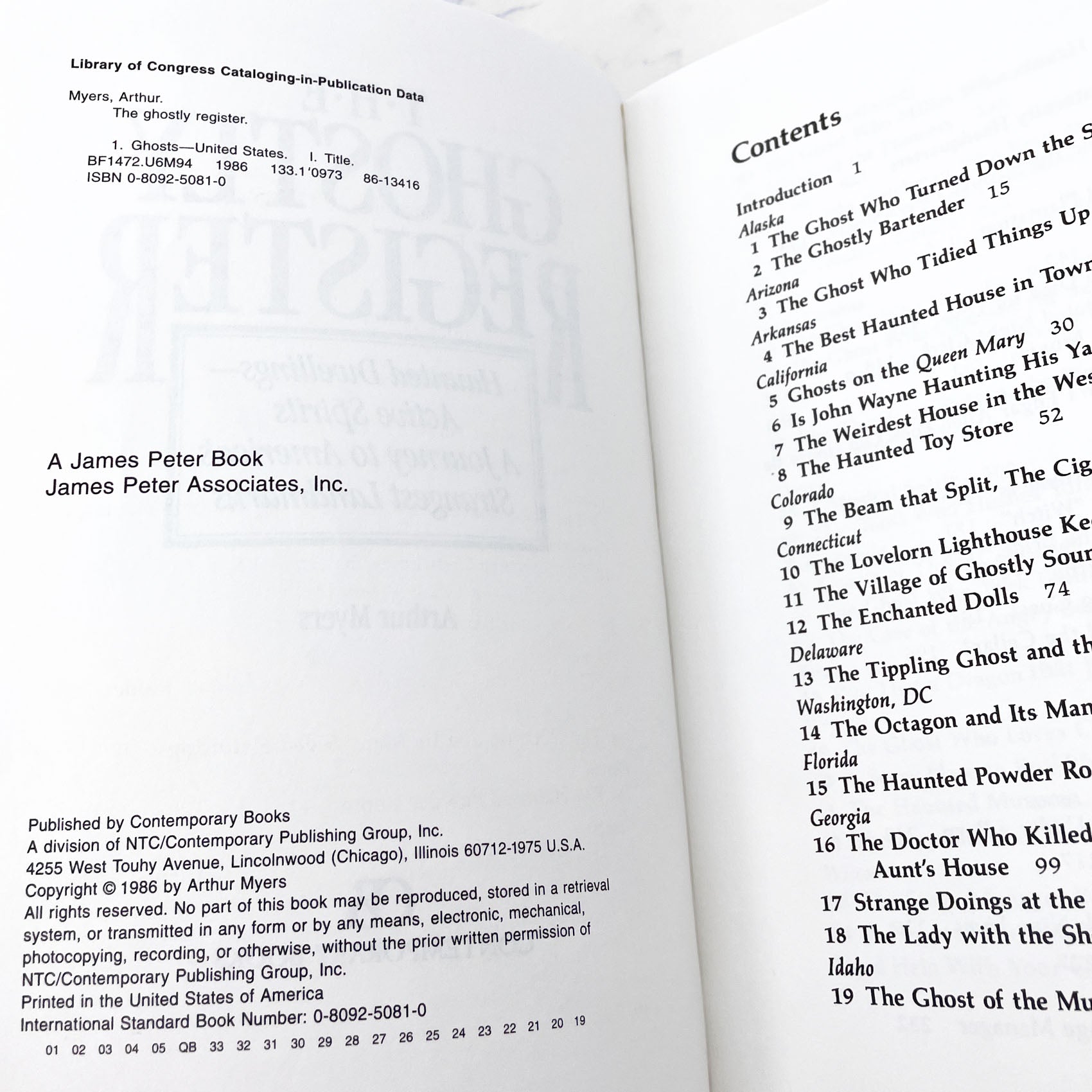 The Ghostly Register, a collection of incredible, titillating tales, is also a guidebook, complete with locations, directions, records of investigations, the best times to witness the manifestations, and educated guesses, based on histories, as to the identity of the ghostly inhabitants. Specialists in psychic phenomena are also listed.