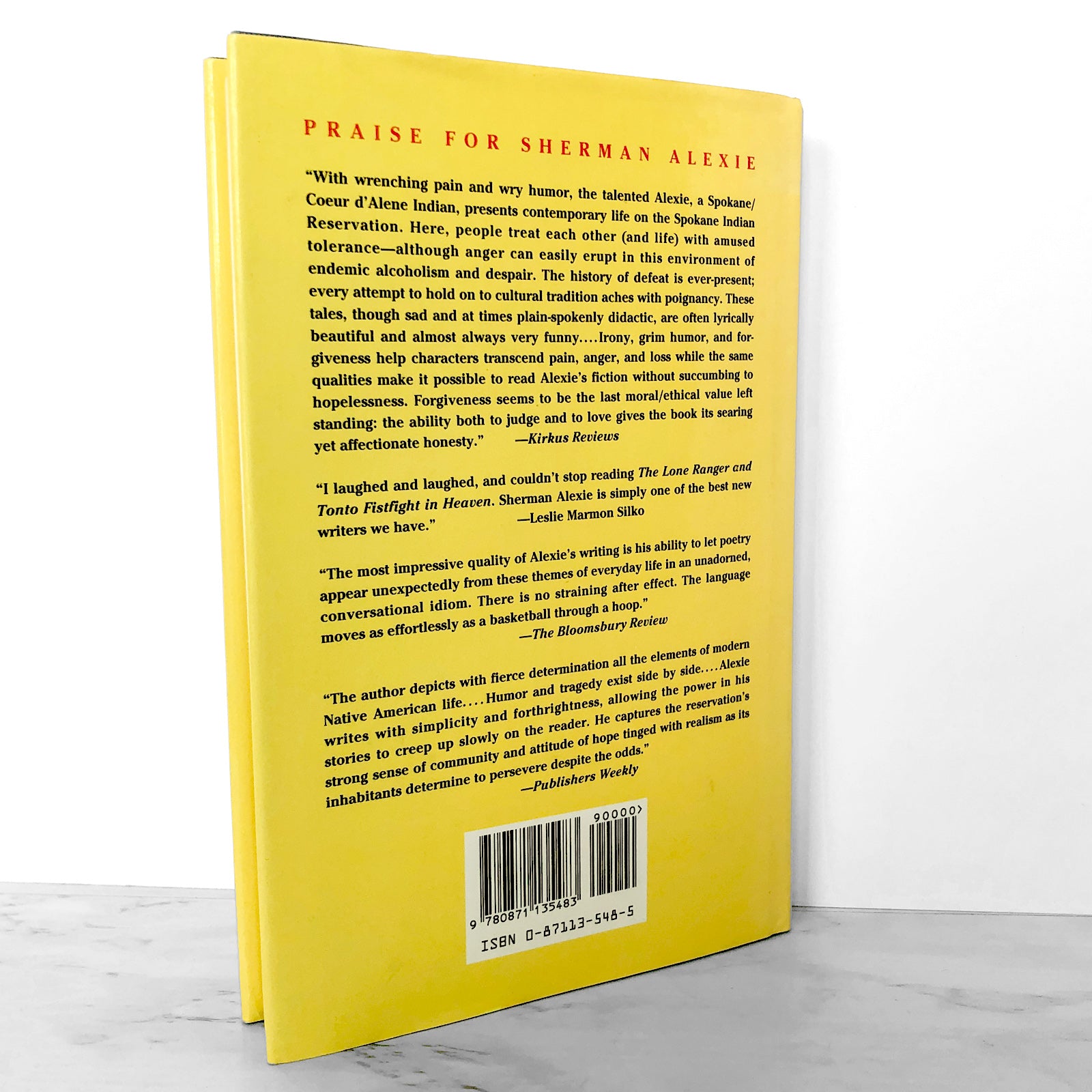 In this darkly comic short story collection, Sherman Alexie, a Spokane/Coeur d'Alene Indian, brilliantly weaves memory, fantasy, and stark realism to paint a complex, grimly ironic portrait of life in and around the Spoke Indian Reservation. These 22 interlinked tales are narrated by characters raised on humiliation and government-issue cheese, and yet are filled with passion and affection, myth and dream. There is Victor, who as a nine-year-old crawled between his unconscious parents hoping that the alcohol seeping through their skins might help him sleep. Thomas Builds-the-Fire, who tells his stories long after people stop listening, and Jimmy Many Horses, dying of cancer, who writes letters on stationary that reads "From the Death Bed of James Many Horses III," even though he actually writes them on his kitchen table. Against a backdrop of alcohol, car accidents, laughter, and basketball, Alexie depicts the distances between Indians and whites, reservation Indians and urban Indians, men and women, and most poetically, between modern Indians and the traditions of the past.