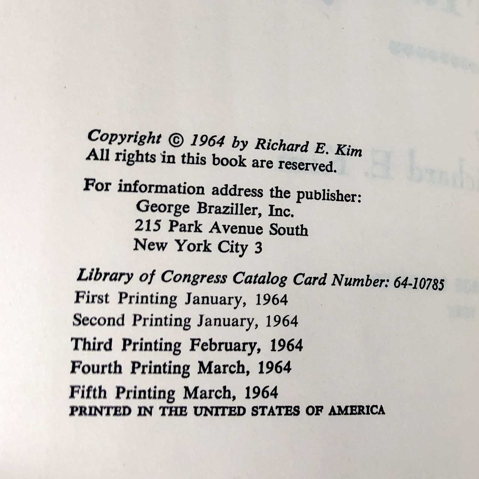 FIRST EDITION • FIFTH PRINTING [1964] GEORGE BRAZILLER