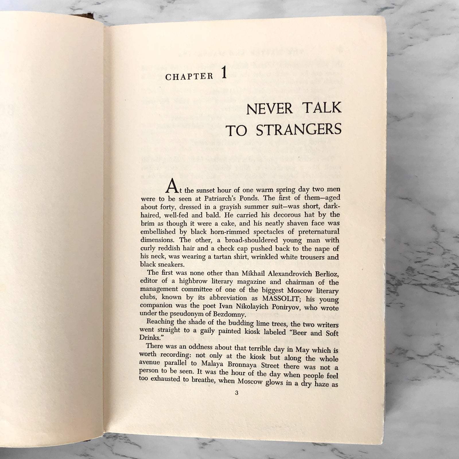 One hot spring, the devil arrives in Moscow, accompanied by a retinue that includes a beautiful naked witch and an immense talking black cat with a fondness for chess and vodka. The visitors quickly wreak havoc in a city that refuses to believe in either God or Satan. But they also bring peace to two unhappy Muscovites: one is the Master, a writer pilloried for daring to write a novel about Christ and Pontius Pilate; the other is Margarita, who loves the Master so deeply that she is willing literally to go to hell for him.
