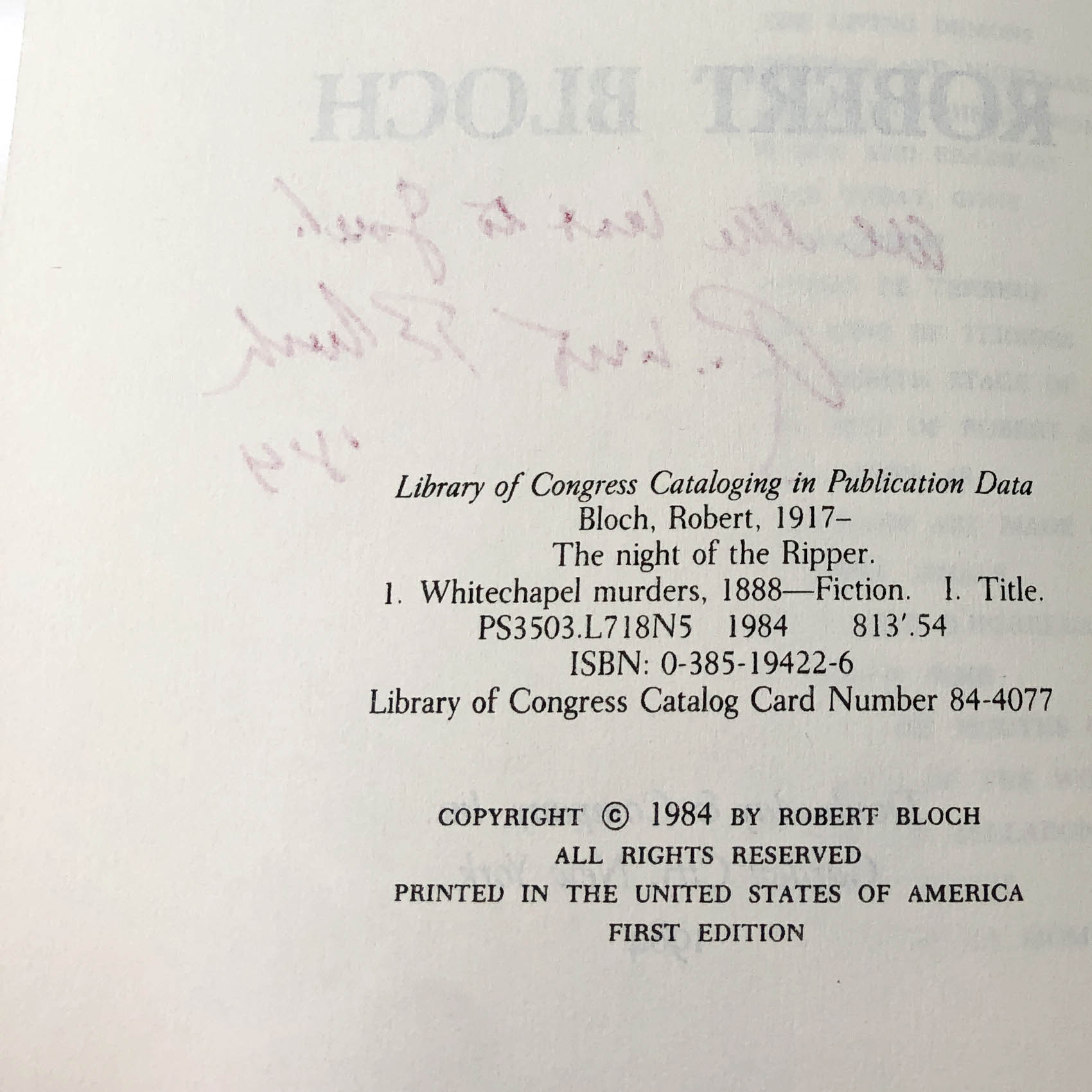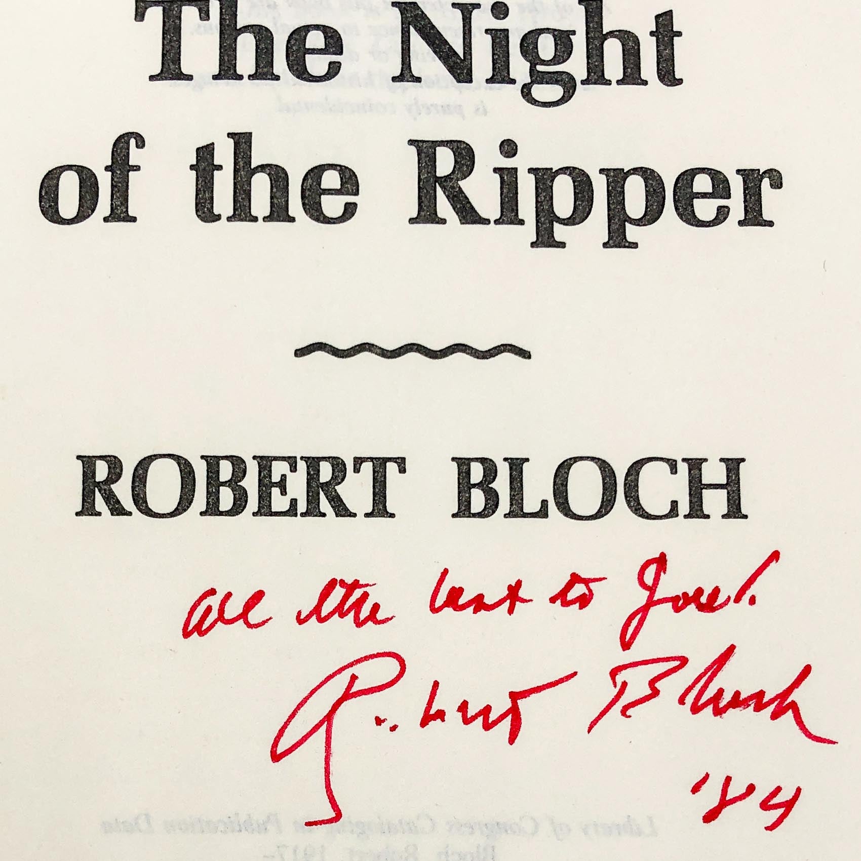 The Night of the Ripper by Robert Bloch SIGNED! [FIRST EDITION • FIRST PRINTING] 1984 • Doubleday