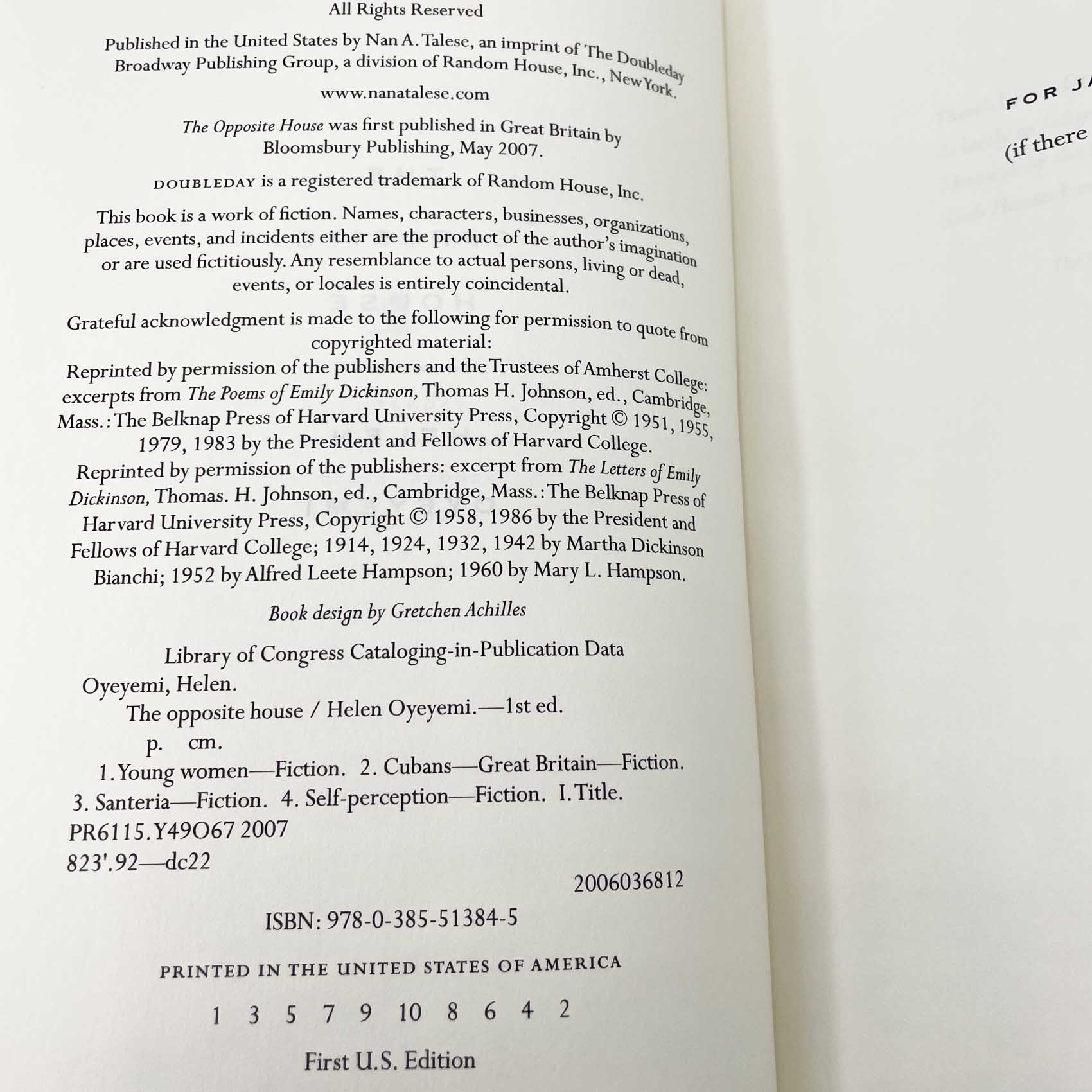 The Opposite House by Helen Oyeyemi [U.S. FIRST EDITION • FIRST PRINTING] 2007 • Doubleday