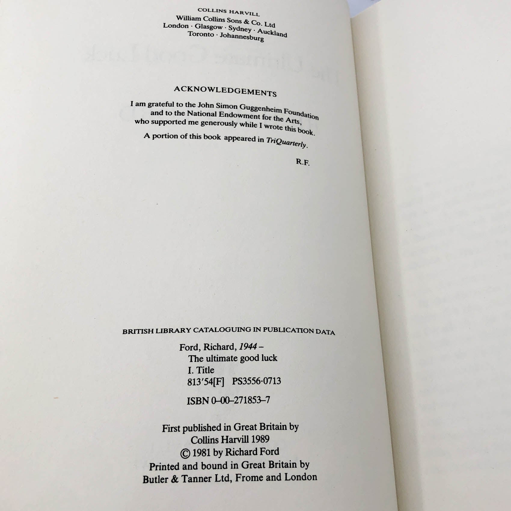 The Ultimate Good Luck by Richard Ford [U.K. FIRST EDITION] 1989 • Collins