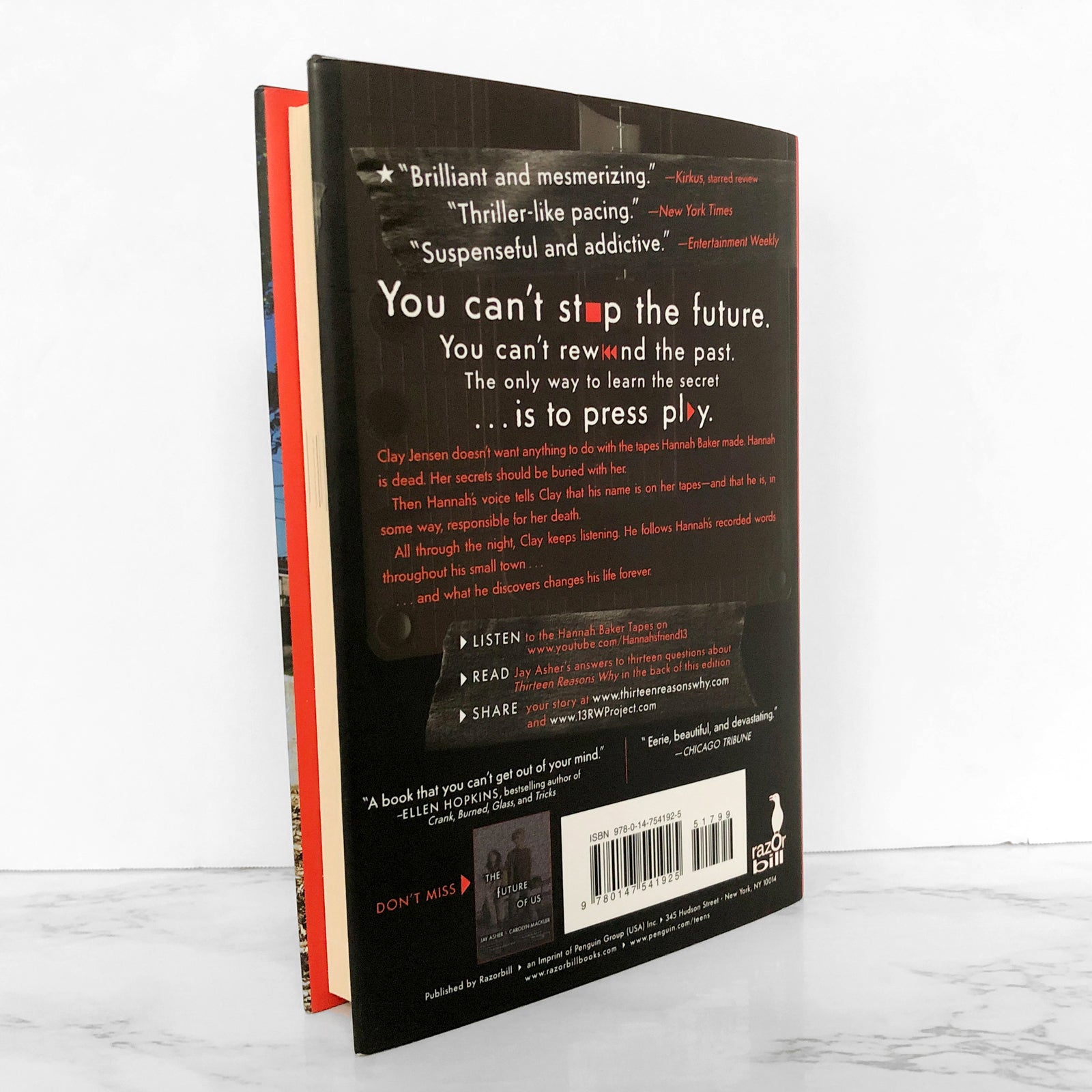 Clay spends the night crisscrossing his town with Hannah as his guide. He becomes a firsthand witness to Hannah’s pain, and as he follows Hannah’s recorded words throughout his town, what he discovers changes his life forever.