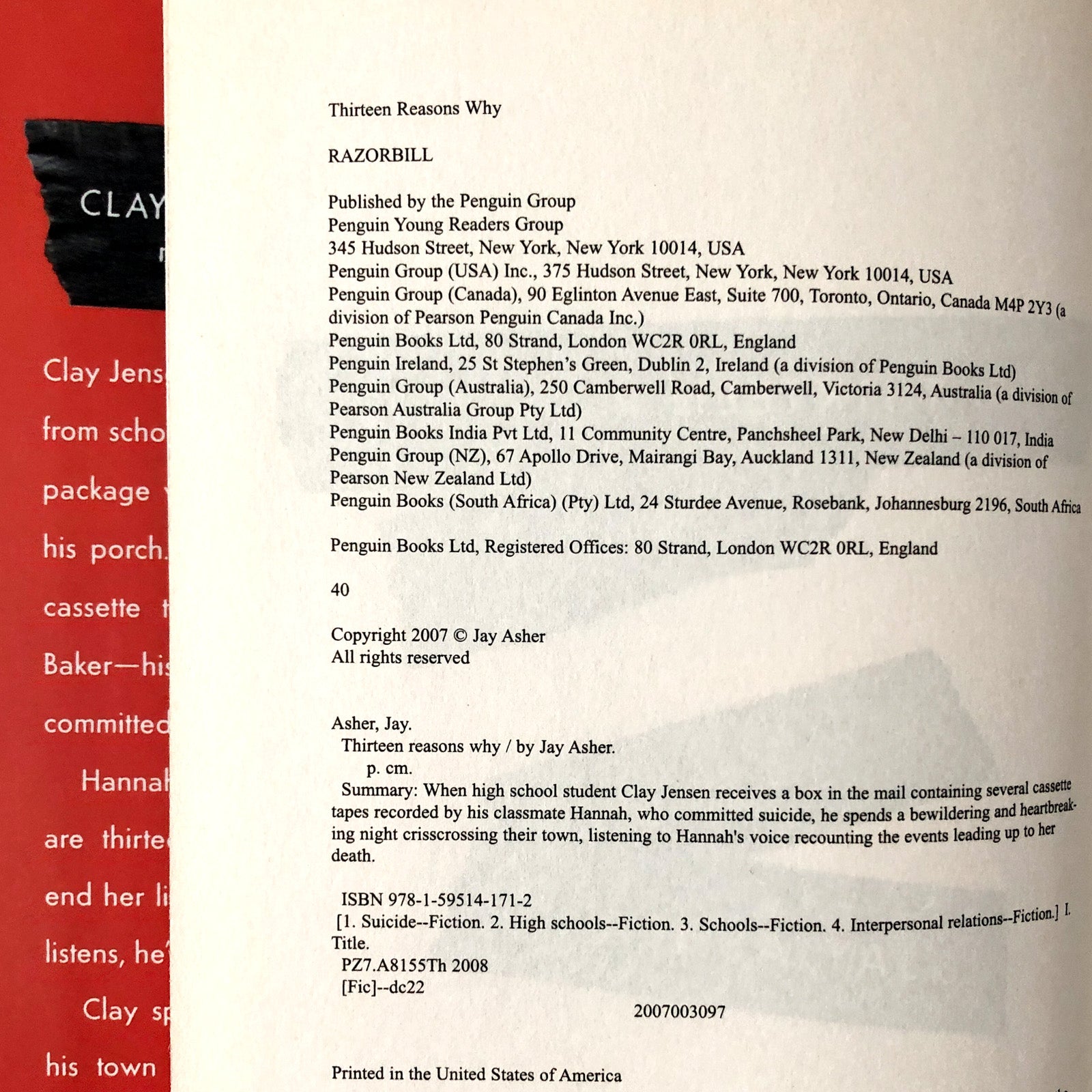 *Title page has been flat signed by author, Jay Asher.