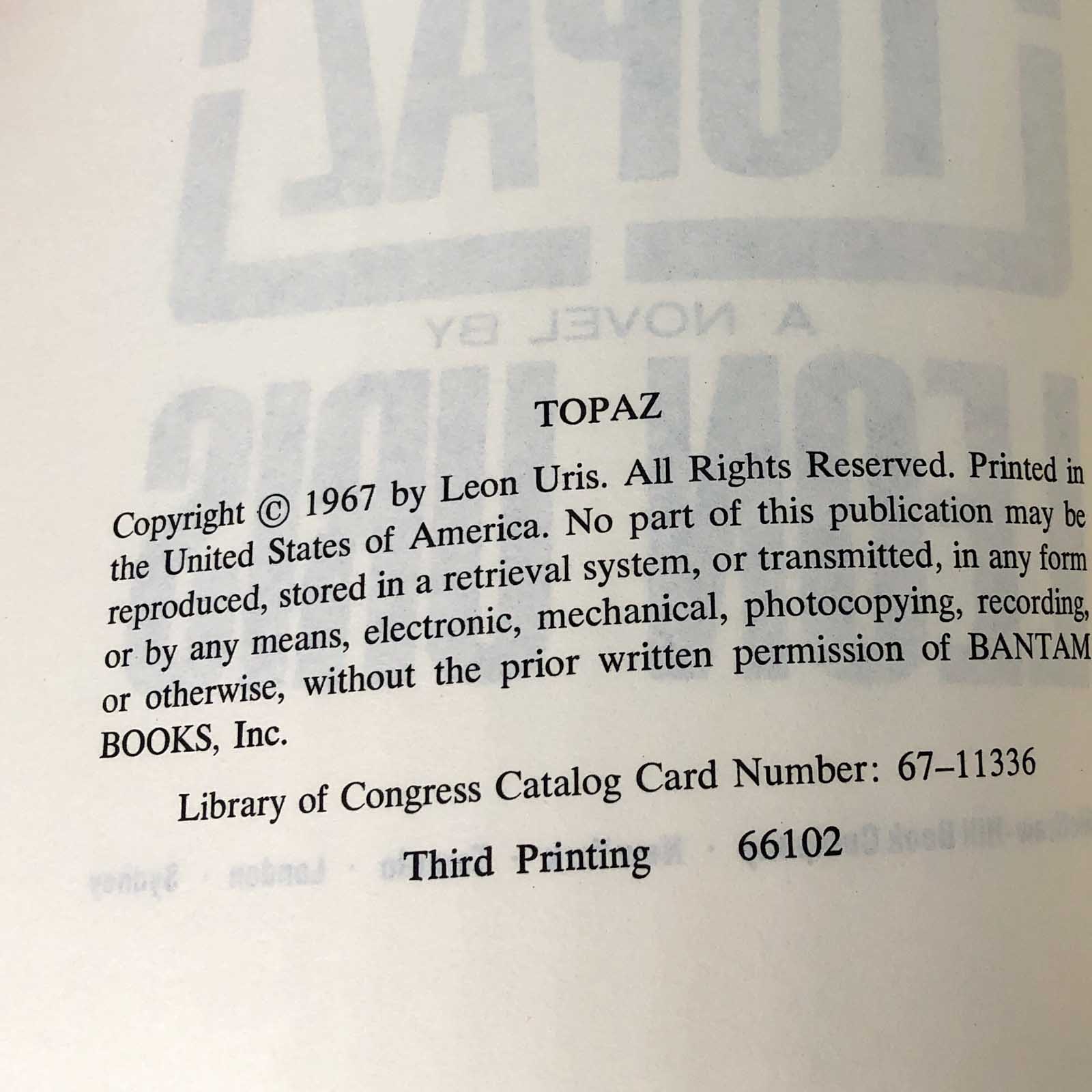 ![Topaz by Leon Uris [FIRST EDITION] 1967 • McGraw Hill](http://bookshopapocalypse.com/cdn/shop/products/topaz-9.jpg?v=1647917219&width=1445)